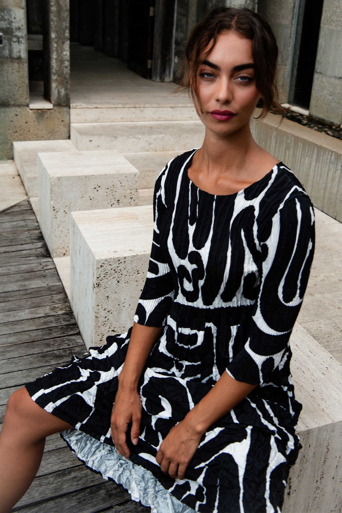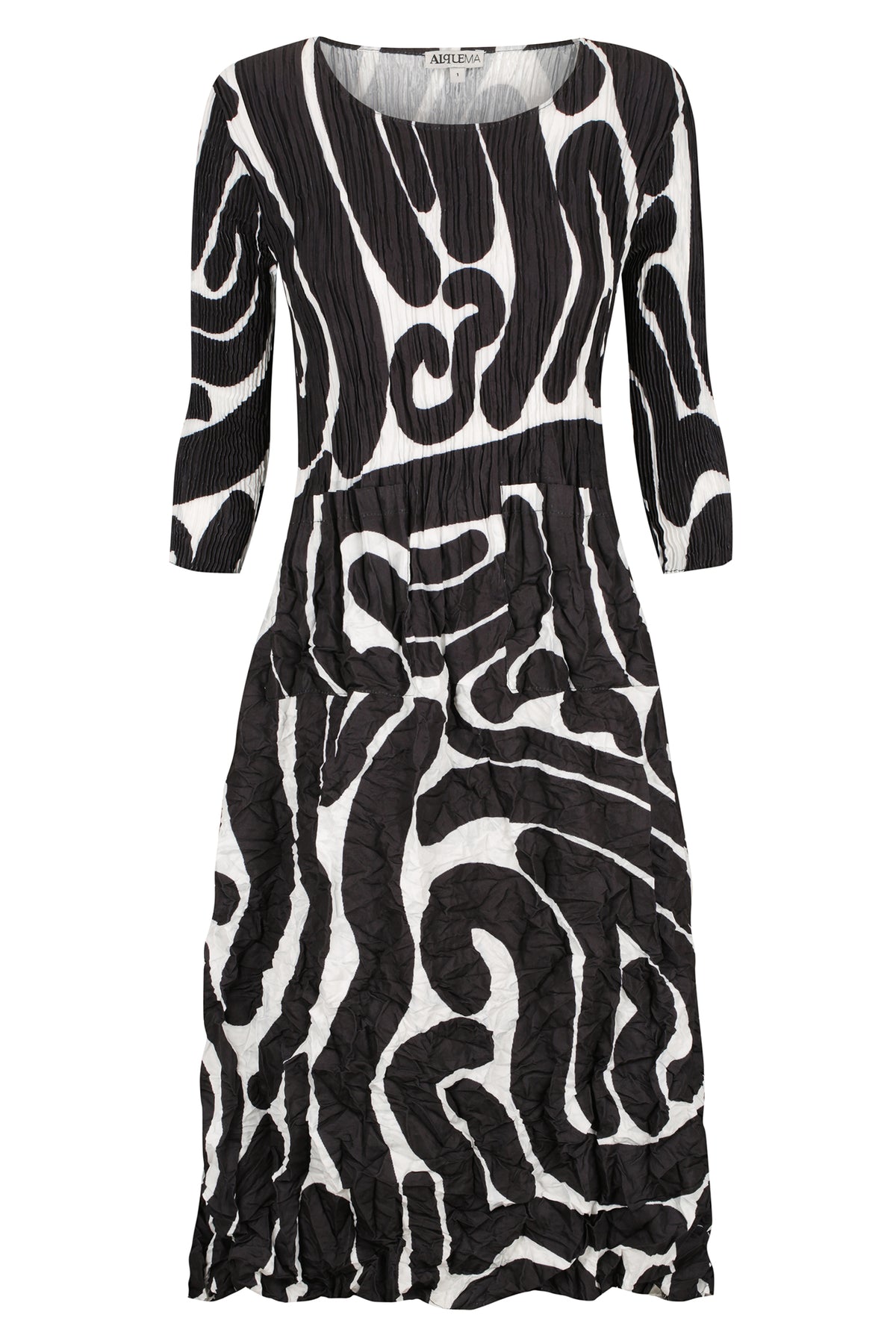 Alquema ADC544 Black Scribble 3/4 Sleeve Smash Dress