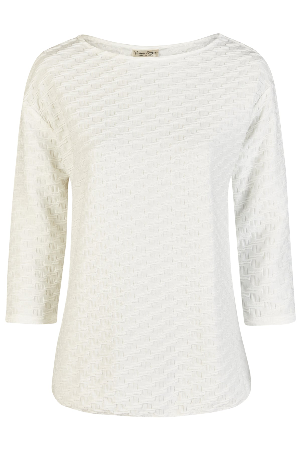 Simple, flattering and a little more elevated than a basic tee, the Barbara Lebek 60100062 Offwhite Textured T-Shirt is an easy go-to for everyday outfits. In a soft offwhite shade, it features an all-over textured finish and easy three-quarter sleeves, making it perfect with jeans, tailored trousers or layered under a lightweight jacket.