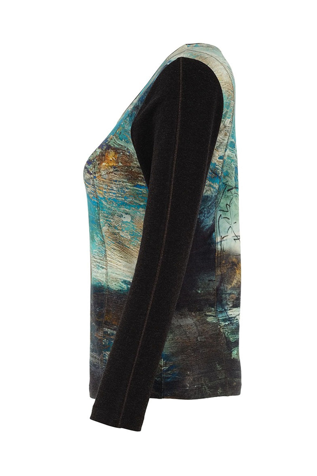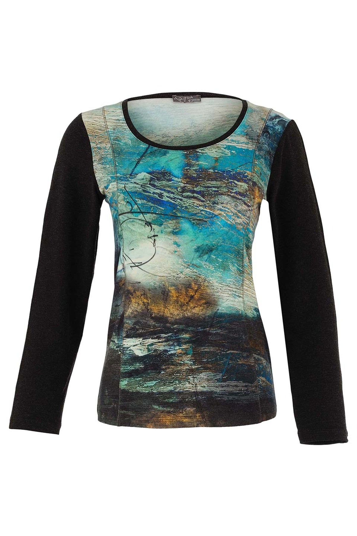 Celebrate colour and creativity with the Dolcezza 75600 Blue Life's Too Short Print Top, a vibrant piece that transforms everyday dressing into an artistic statement. Inspired by expressive brushwork and abstract forms, this top features a dynamic palette of blues, greens, and earthy tones, layered with black line drawings that evoke movement and emotion. The black sleeves and neckline offer sleek contrast, framing the print with modern edge.