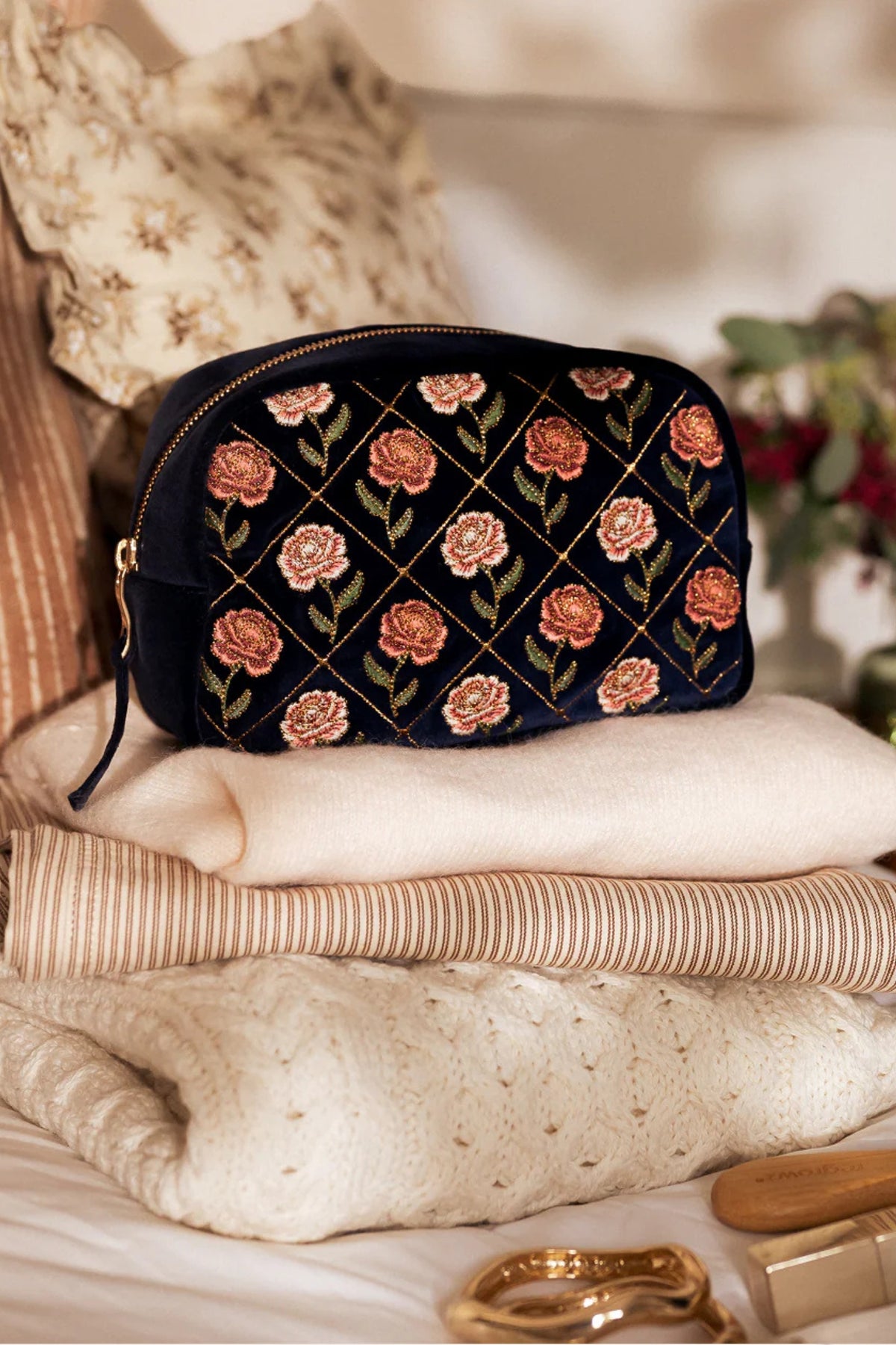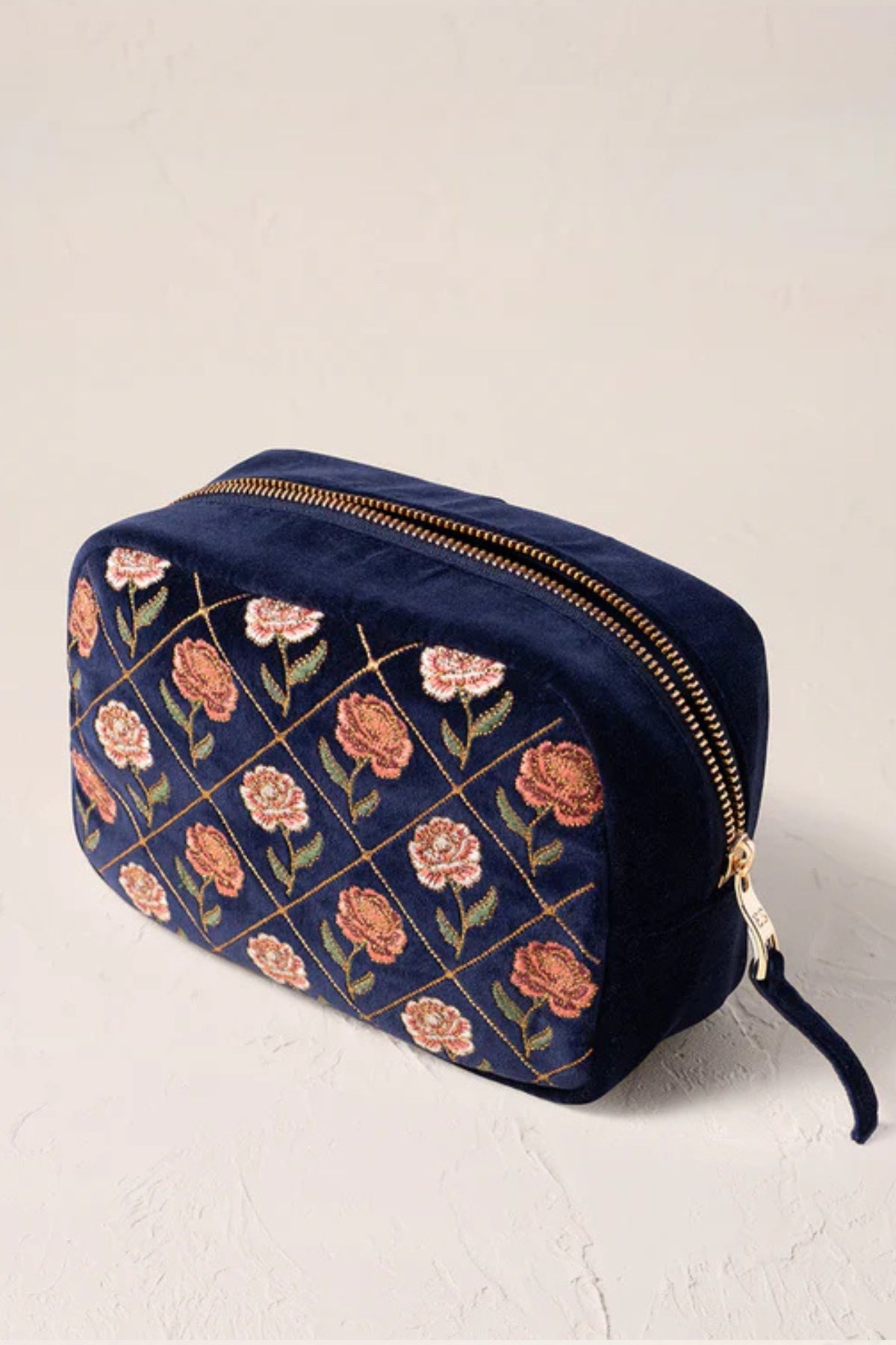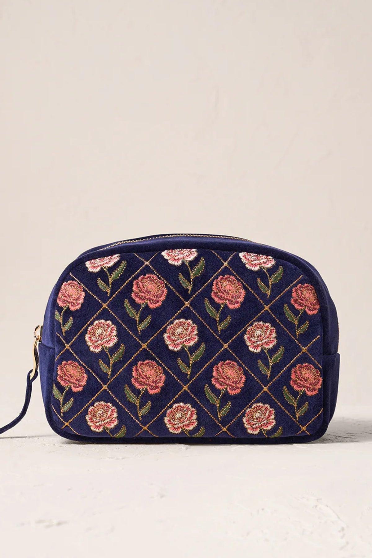 Elizabeth Scarlett Ink Blue Rose Velvet Makeup Bag
