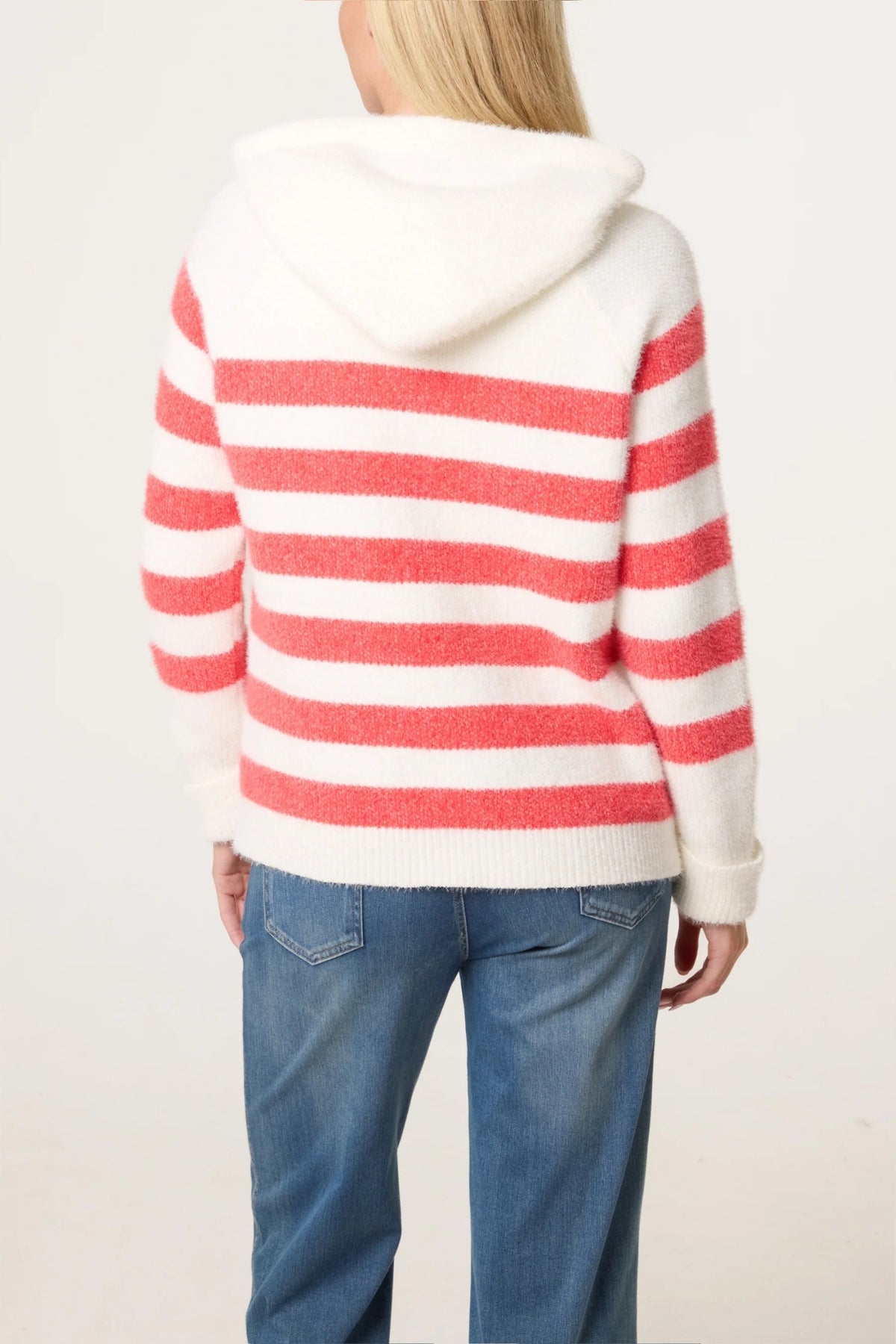 Coral Stripe Super Cosy Zip Cardi Hoodie