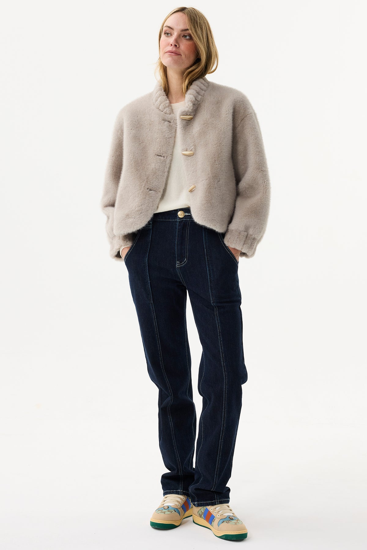 Leo & Ugo Top KH920 Grey Faux Fur Toggle Jacket