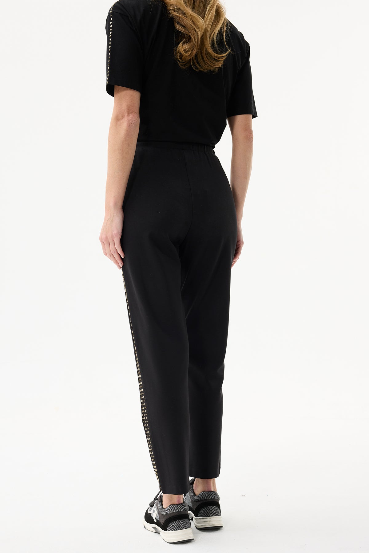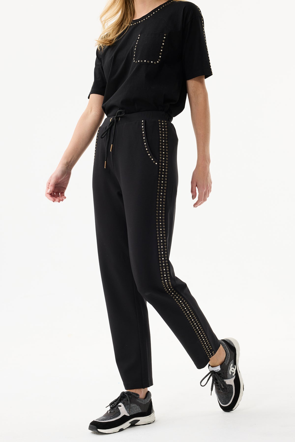 Leo & Ugo Trousers JWP801 Black Studded Stripe Jogger Trousers