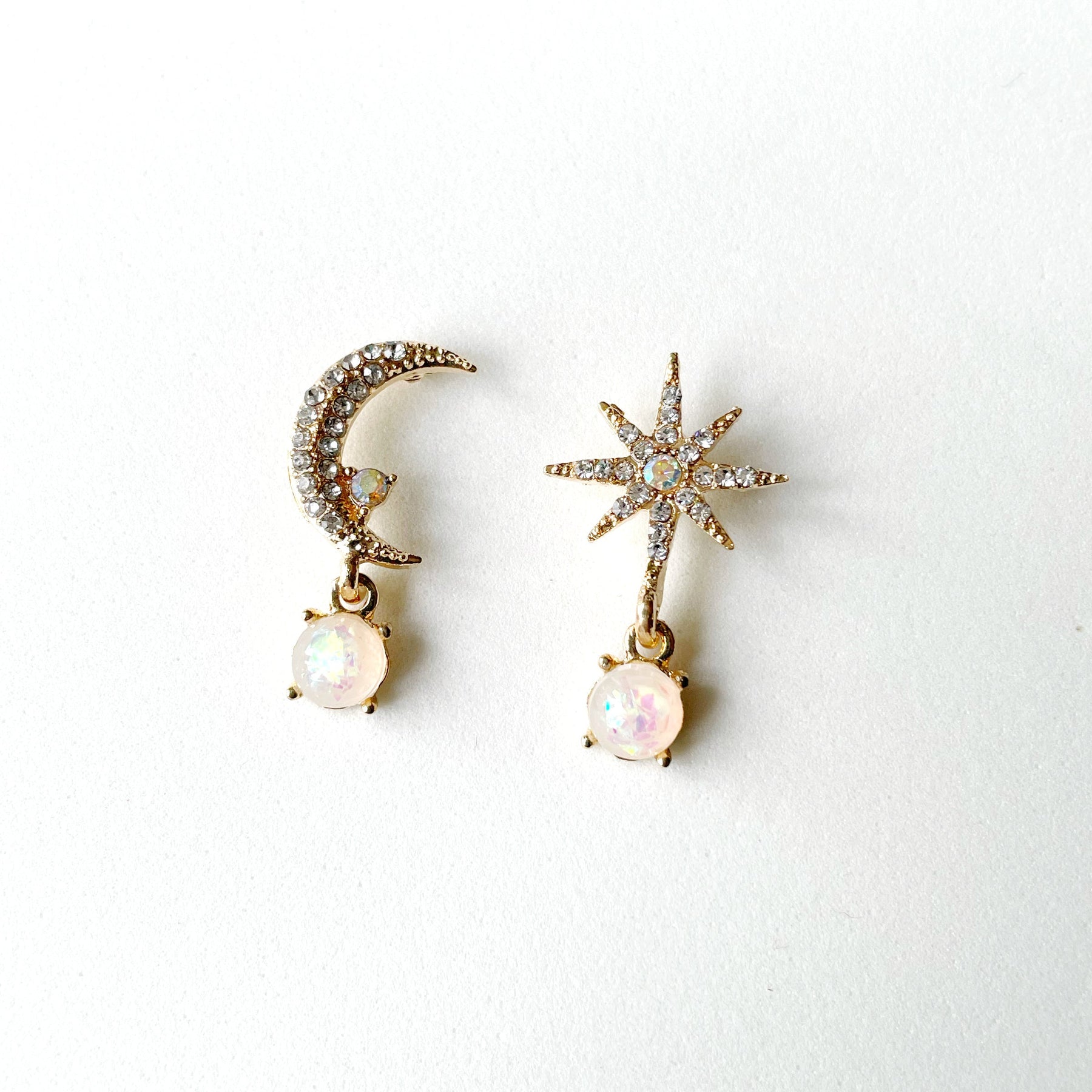 Make a perfectly imperfect statement with our celestial mis-matching Andromeda earrings.  Featuring a star charm on one earring and a moon on the other.