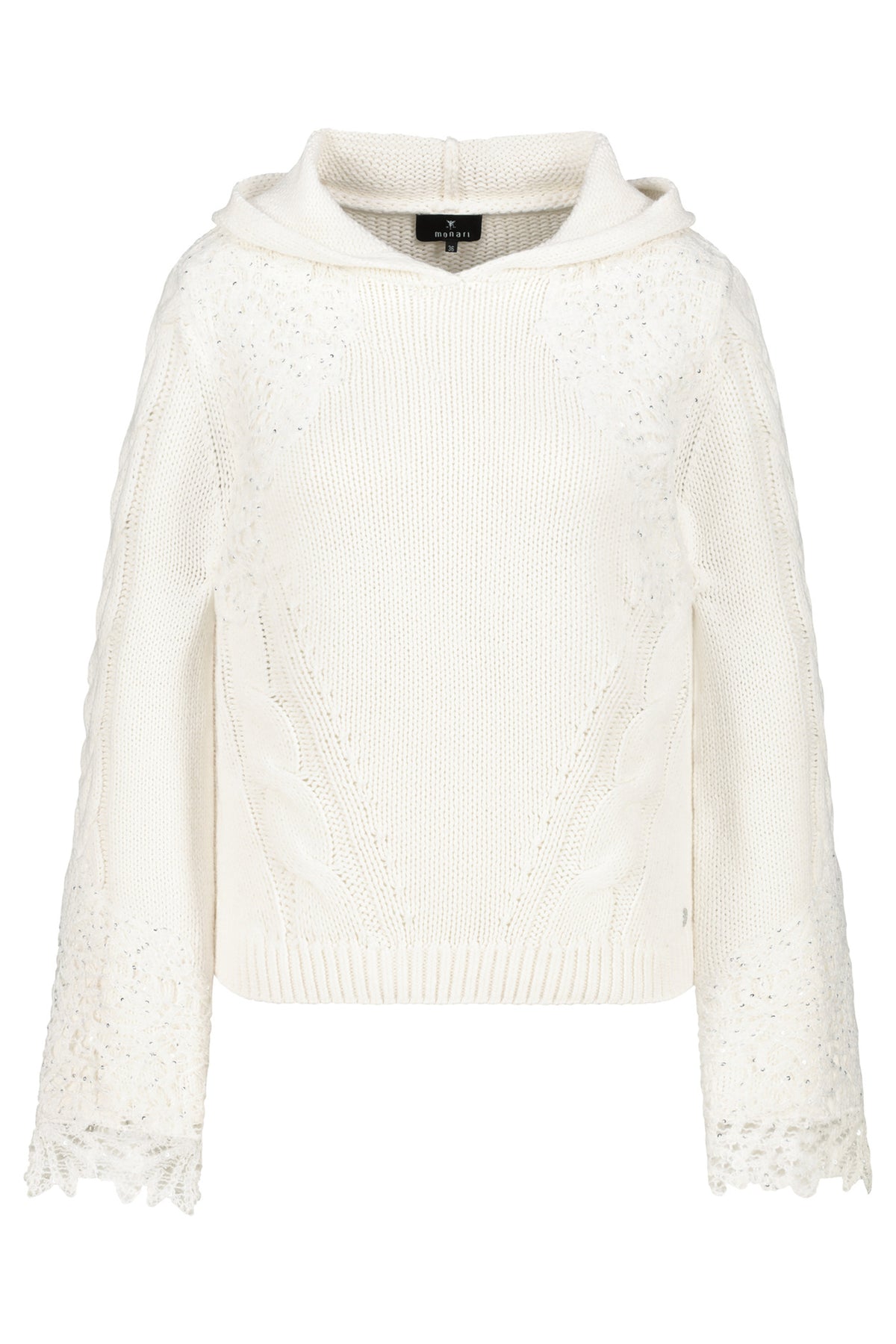 A cosy staple with delicate detailing, the Monari 809124 Cream Embroidered Hooded Jumper blends soft texture with casual refinement. Its cable-knit sleeves and tonal embroidery offer subtle interest across layered edits.