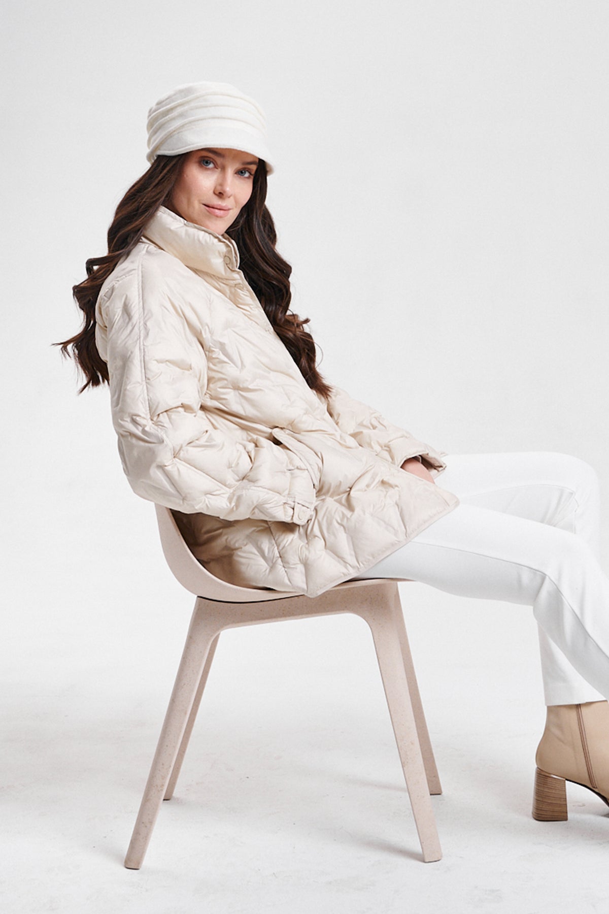 A sculptural staple with winter-ready polish, the Nikki Jones 8134-609 Birch Cream Diamond Quilted Down Coat blends clean lines with tactile warmth. Its tailored silhouette and tonal finish offer a refined twist on cold-weather dressing.