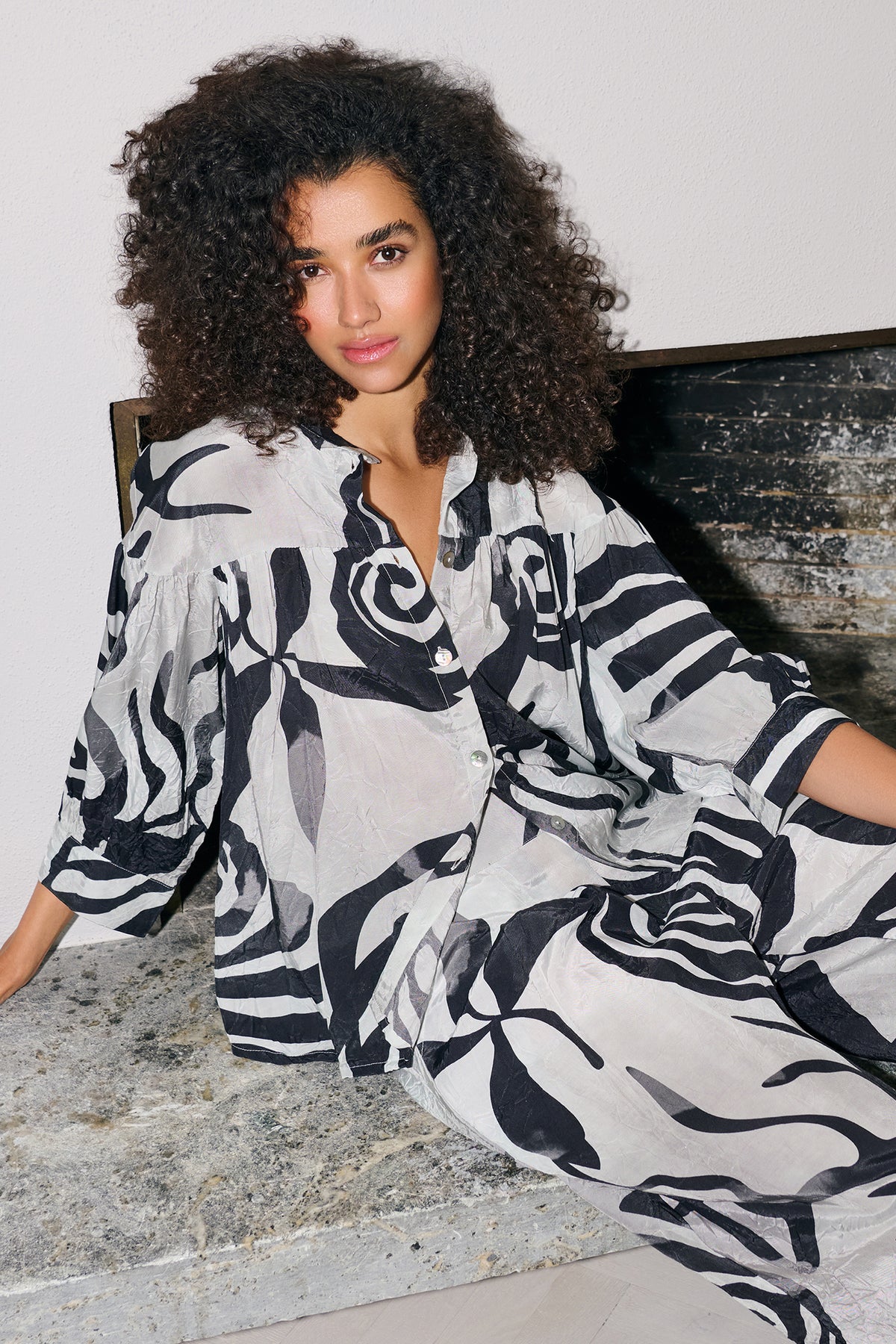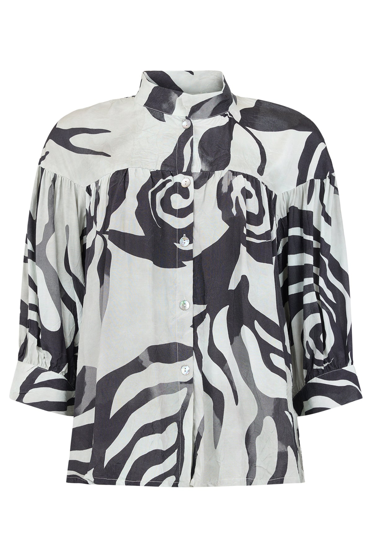 Bold, modern and surprisingly easy to wear, the Noen 86278 90 Black Abstract Floral Print Shirt is a statement piece that works with everything from denim to tailoring. The striking black-on-light abstract floral print gives it real impact, while the relaxed shape, soft gathers and three-quarter sleeves keep it feeling effortless for everyday.