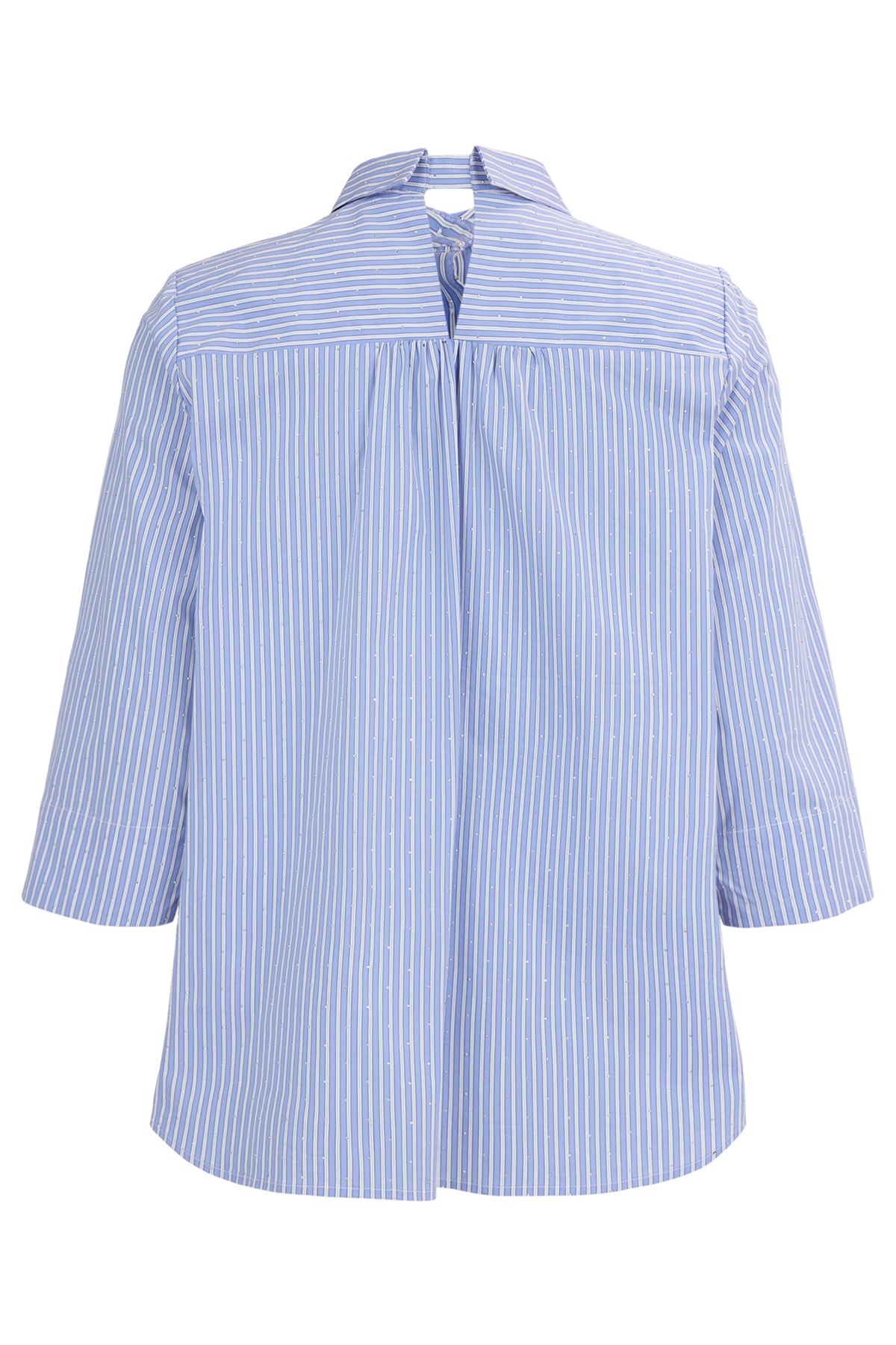 Crisp, easy and just a little different, the Noen 86288 60 Rhinestone Blue Pinstripe Shirt is a wardrobe staple you’ll wear on repeat. The classic blue pinstripe is given a modern update with a relaxed shape, three-quarter sleeves and a neat collar, finished with a subtle cut-out detail at the back for an unexpected twist.