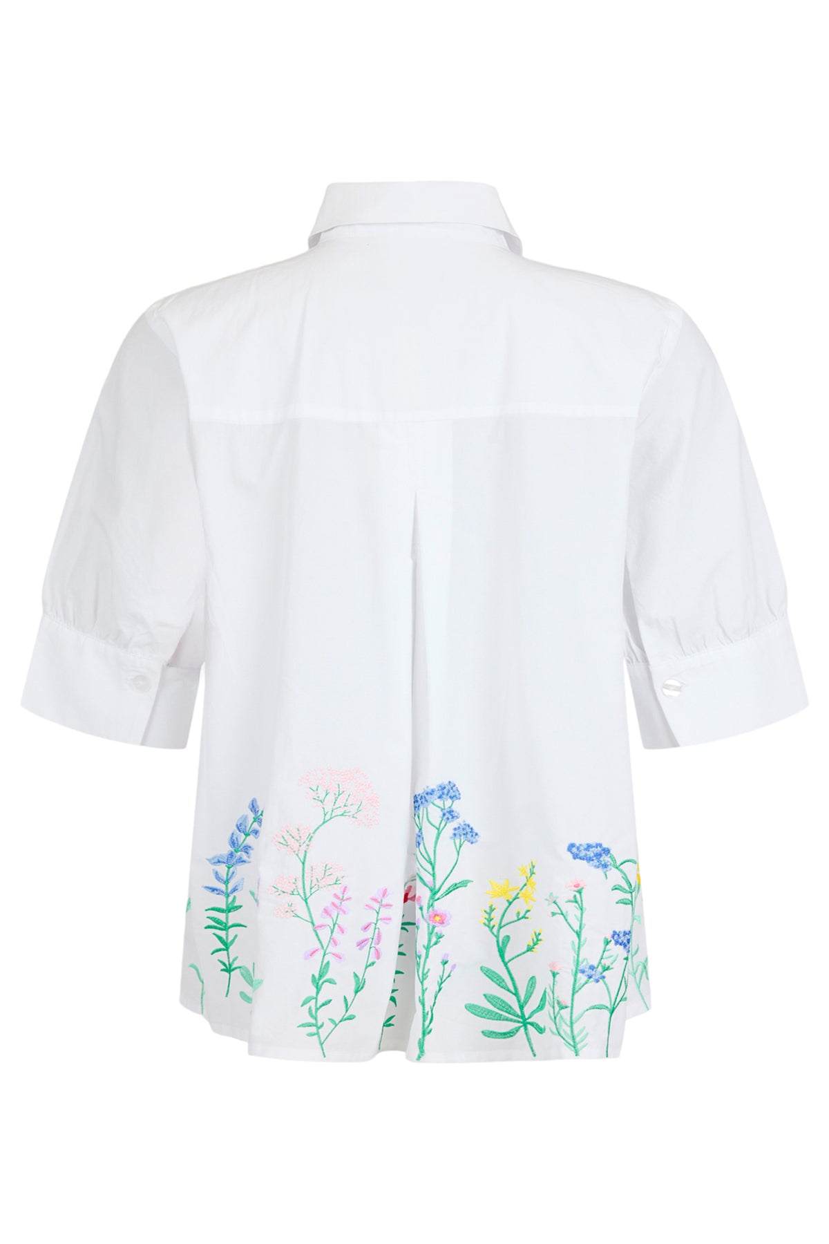 Fresh, crisp and full of pretty detail, the Noen 86294 10 White Embroidered Flowers Short Sleeve Shirt is a summer-ready staple with a twist. The clean white base is finished with colourful embroidered wildflowers along the hem, while the relaxed fit and short sleeves keep it feeling easy and breathable for everyday wear.