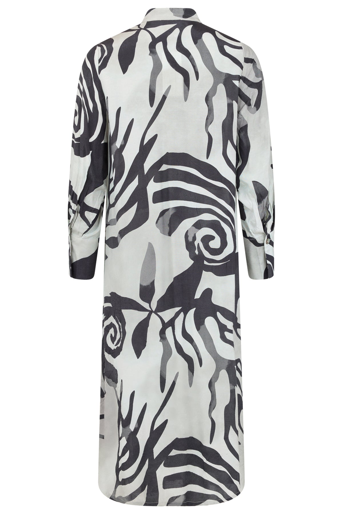 Make an impact with the Noen 88621 90 Black Abstract Leaf Print Dress – a striking monochrome shirt dress that’s as easy to wear as it is eye-catching. The bold abstract leaf print sits on a soft light base, with a button-through top and a gently gathered skirt that gives it lovely movement as you walk.