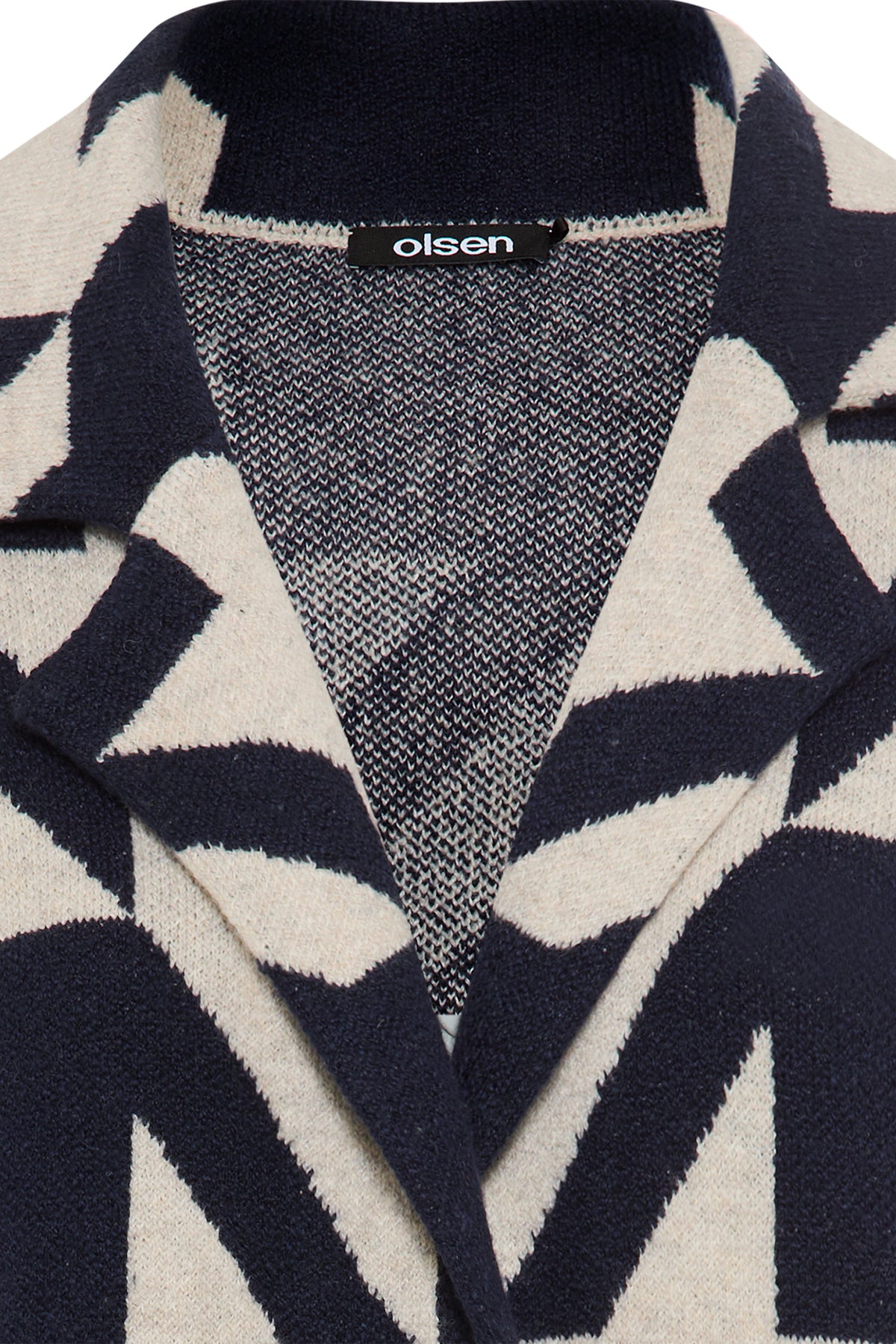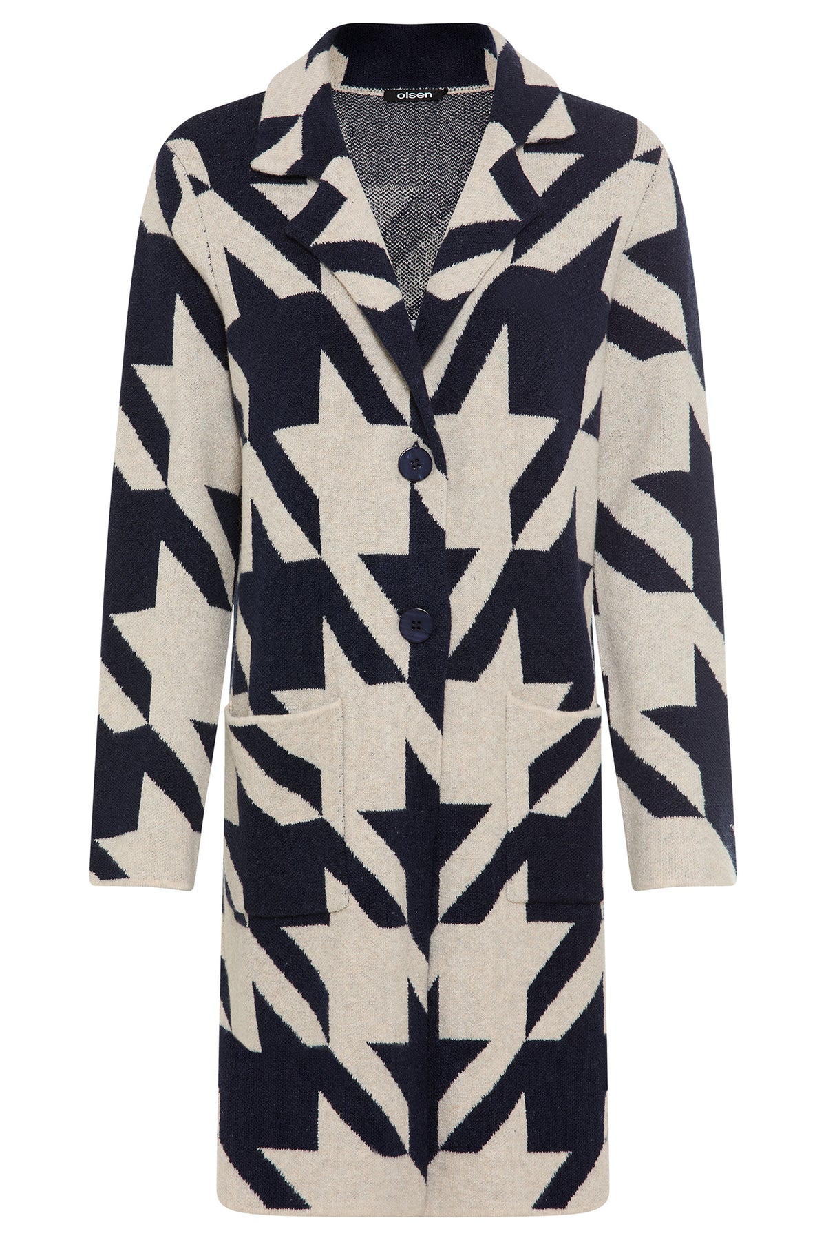 Olsen 11004783 Navy Houndstooth Print Longline Jacket