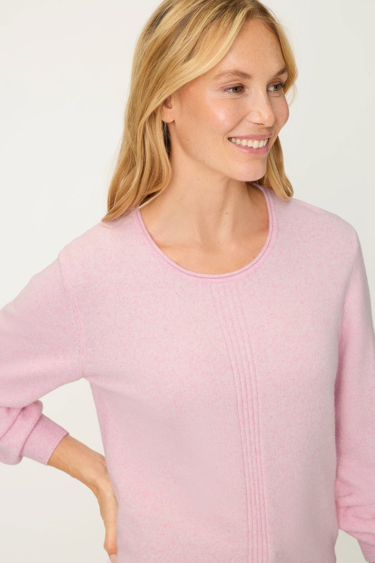 Wrap yourself in cloud-soft comfort with this dreamy melange jumper that's about to become your go-to favourite. The luxuriously soft knit fabric feels like a gentle hug, while full-length sleeves keep you cosy through every season. Whether you're working from home, meeting friends for coffee, or simply lounging about, this everyday essential delivers effortless style without compromising on comfort. In a soothing cloud blue shade, it's the kind of piece that pairs with absolutely everything in your wardrobe.
