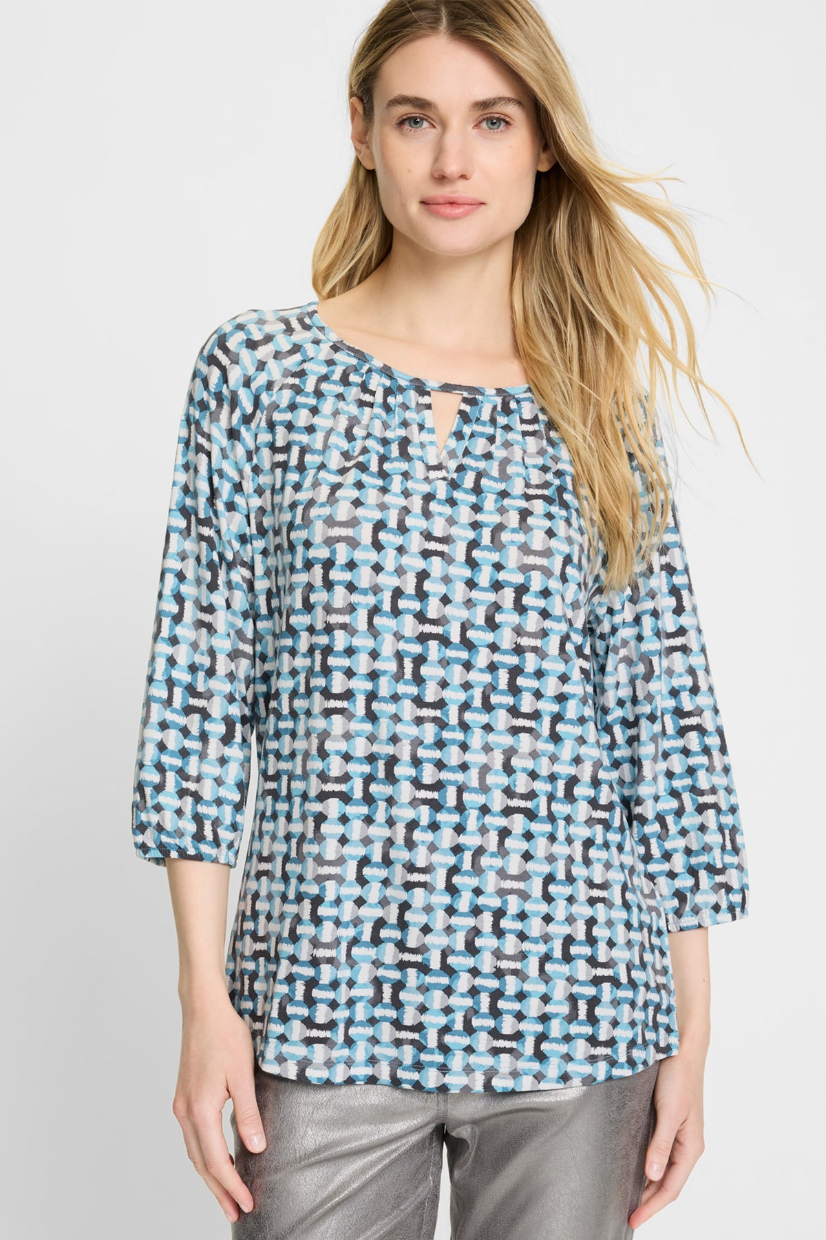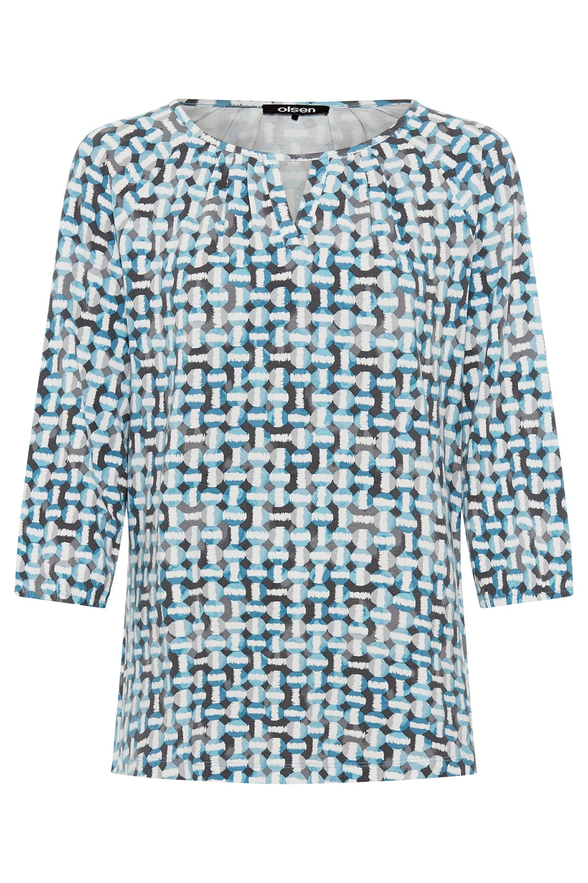 A polished everyday piece with soft structure, the Olsen 11105204 Teal Blue Circle Print T-Shirt combines comfort with a bold geometric print. Its flattering neckline and easy fit make it ideal for smart-casual styling.