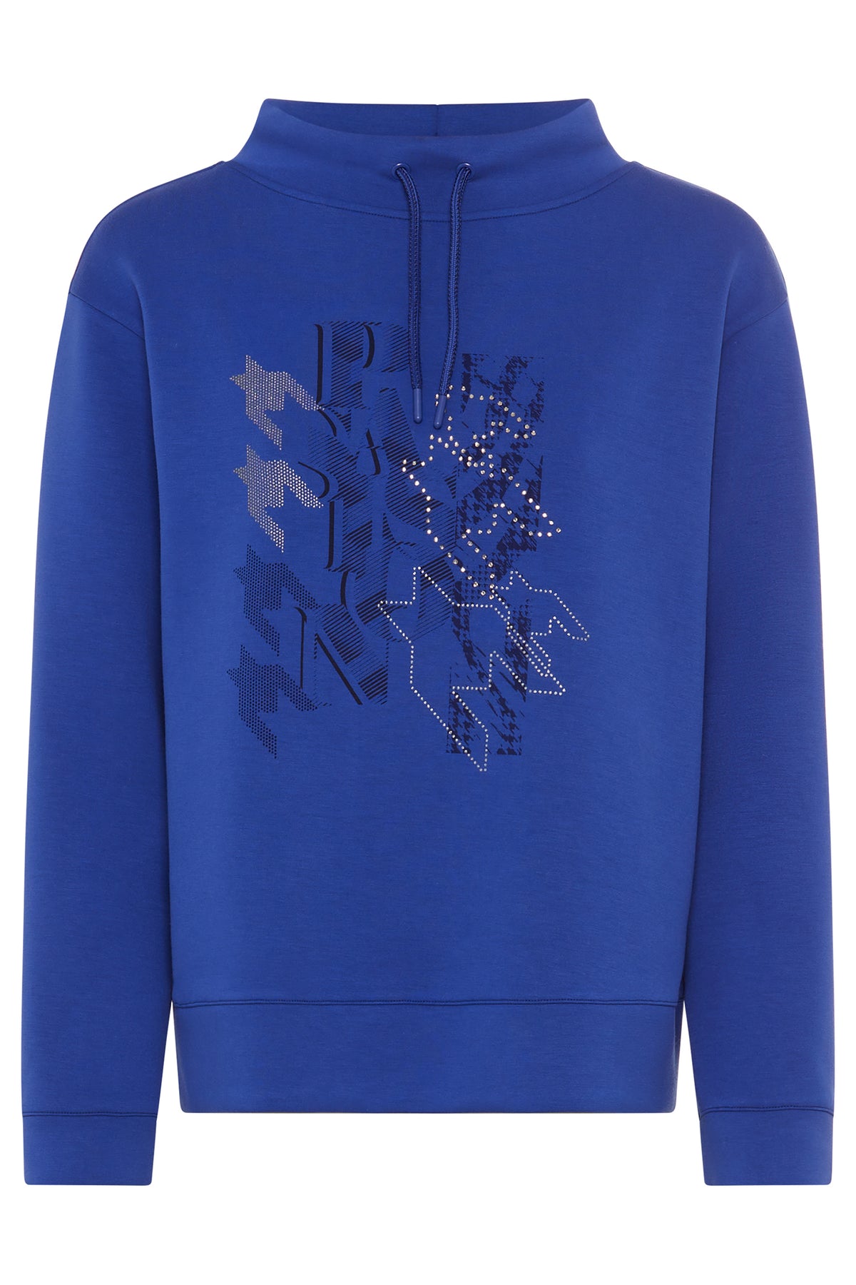 A bold casual layer with graphic appeal, the Olsen 11201678 Cobalt Blue Houndstooth Wide Neck Sweatshirt combines comfort with a modern twist. Its stylised print and relaxed fit make it ideal for off-duty dressing with personality.