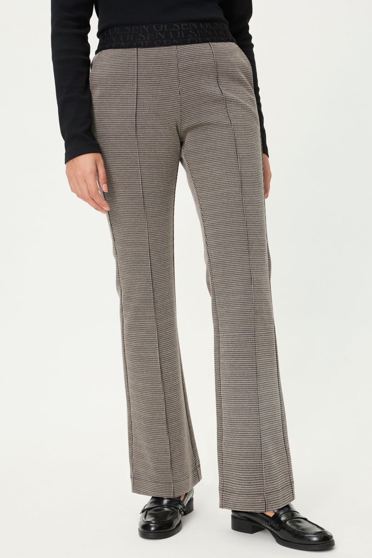 Olsen 14002471 Hazelnut Brown Houndstooth Wide Leg Pull-On Trousers