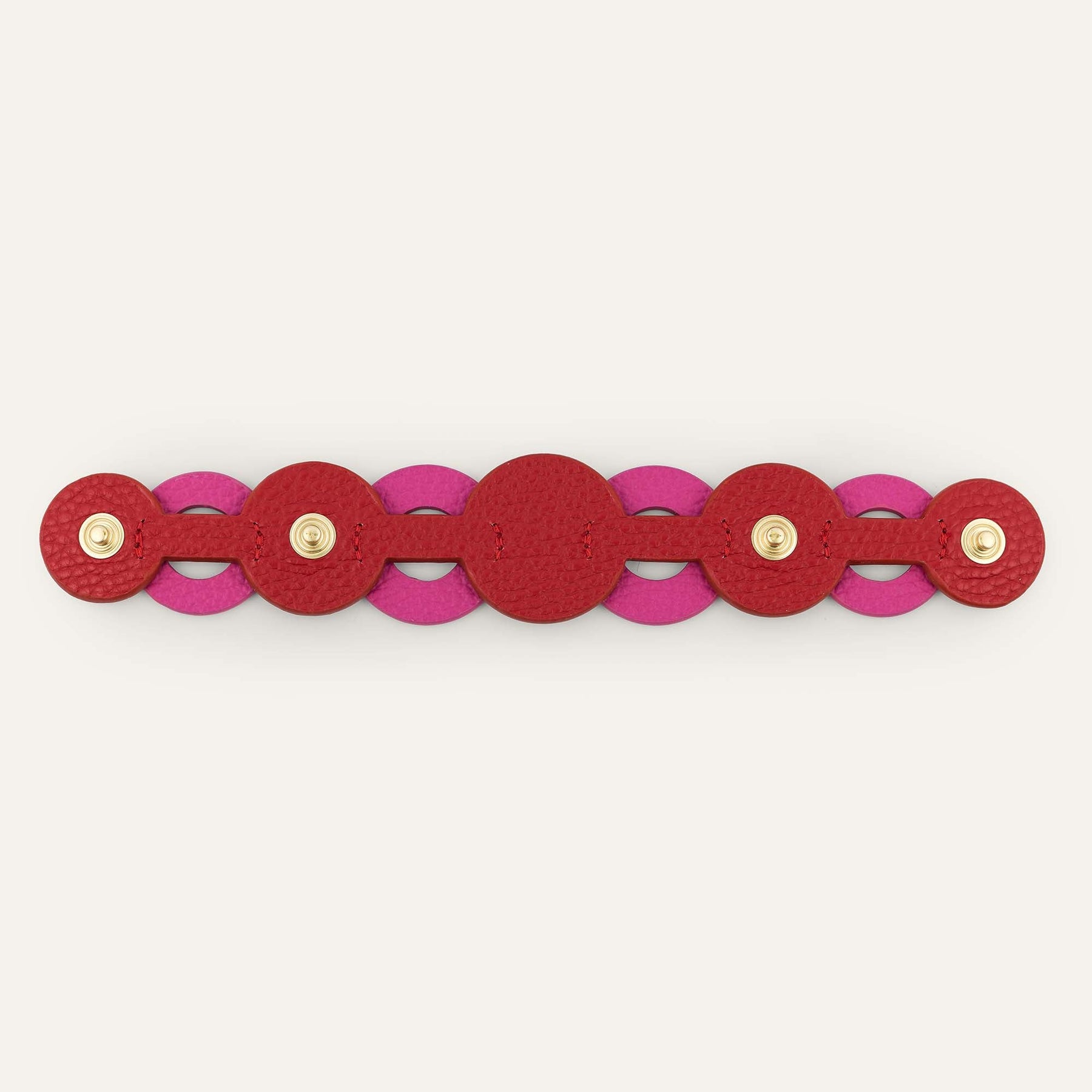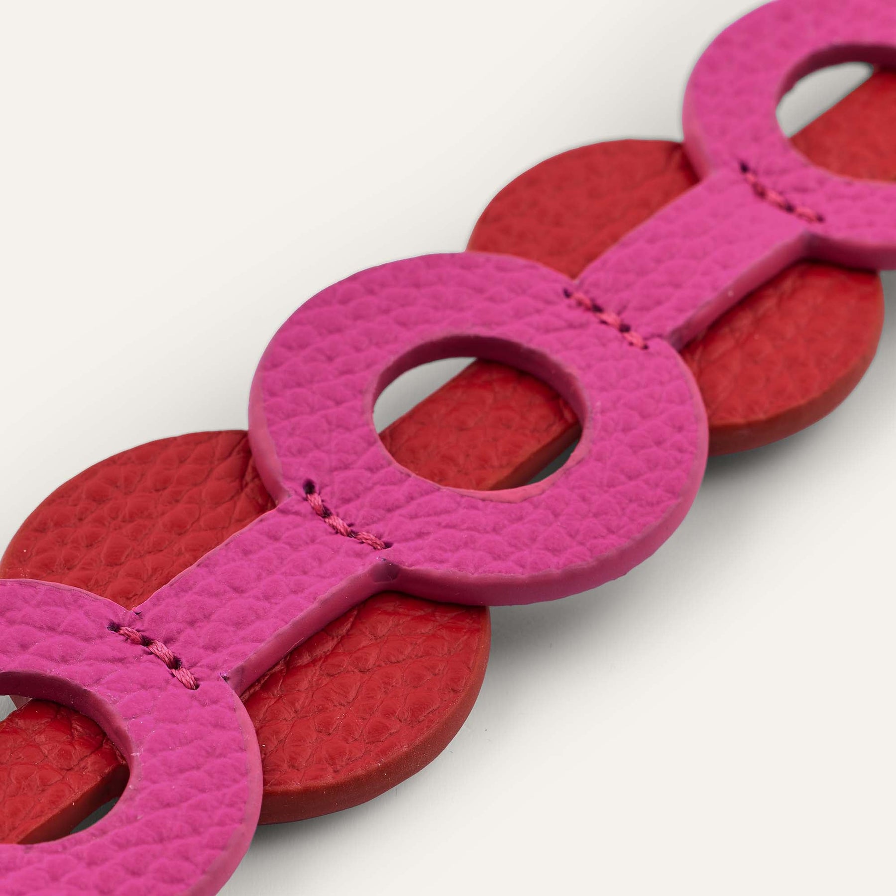 Elevate your handbag with a chic and versatile Art Deco Duo. Handcrafted from two layers of luxurious Italian leather in complementary colourways, these Art Deco Duos are designed to give your bag a unique and stylish new look. Each Art Deco Duo is meticulously handcrafted by skilled artisans, ensuring the highest quality and attention to detail. The use of luxury Italian leather guarantees durability while providing a sophisticated touch to your handbag. Created with Stud fixtures, attach to any standard sized bag with poppers.