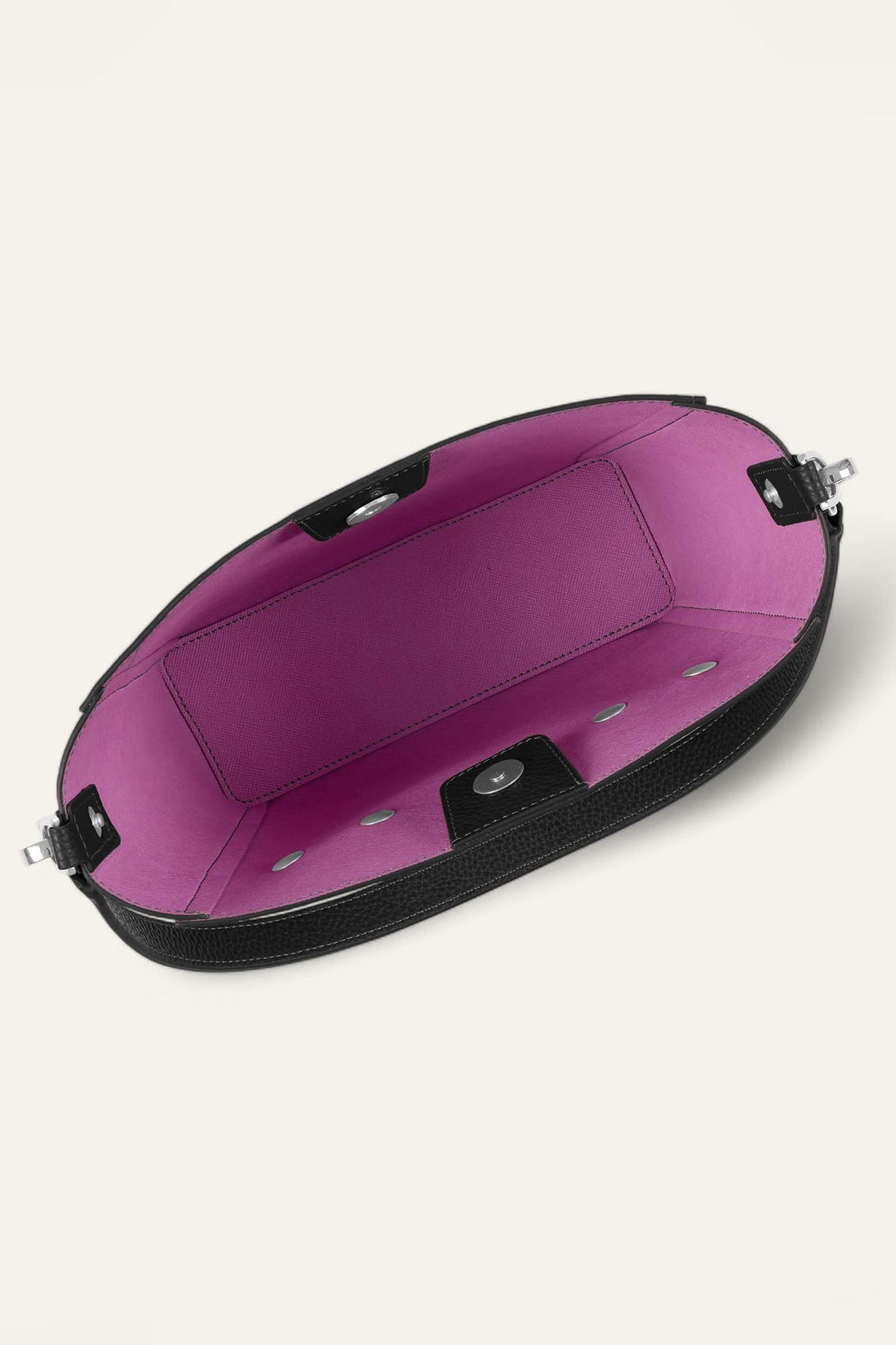 Sarah Haran Mini S Tote Bag Black With Silver Hardware is a compact wardrobe essential crafted from full grain Italian leather. With classic tones and cool metallic detailing, it’s ideal for professional styling, gifting, or elevated everyday wear.