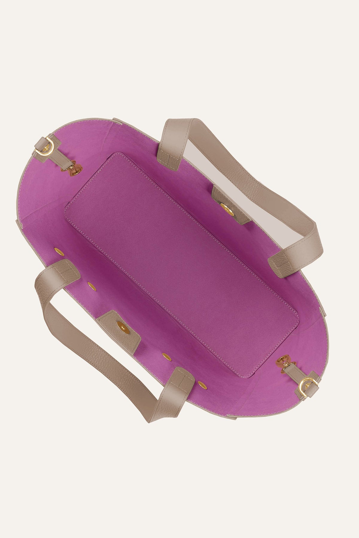 This tote blends premium craftsmanship with understated sophistication, making it a confident choice for workwear, travel, or tonal layering. Pair with tailored separates for a sleek finish or use as a grounding piece in seasonal wardrobes.