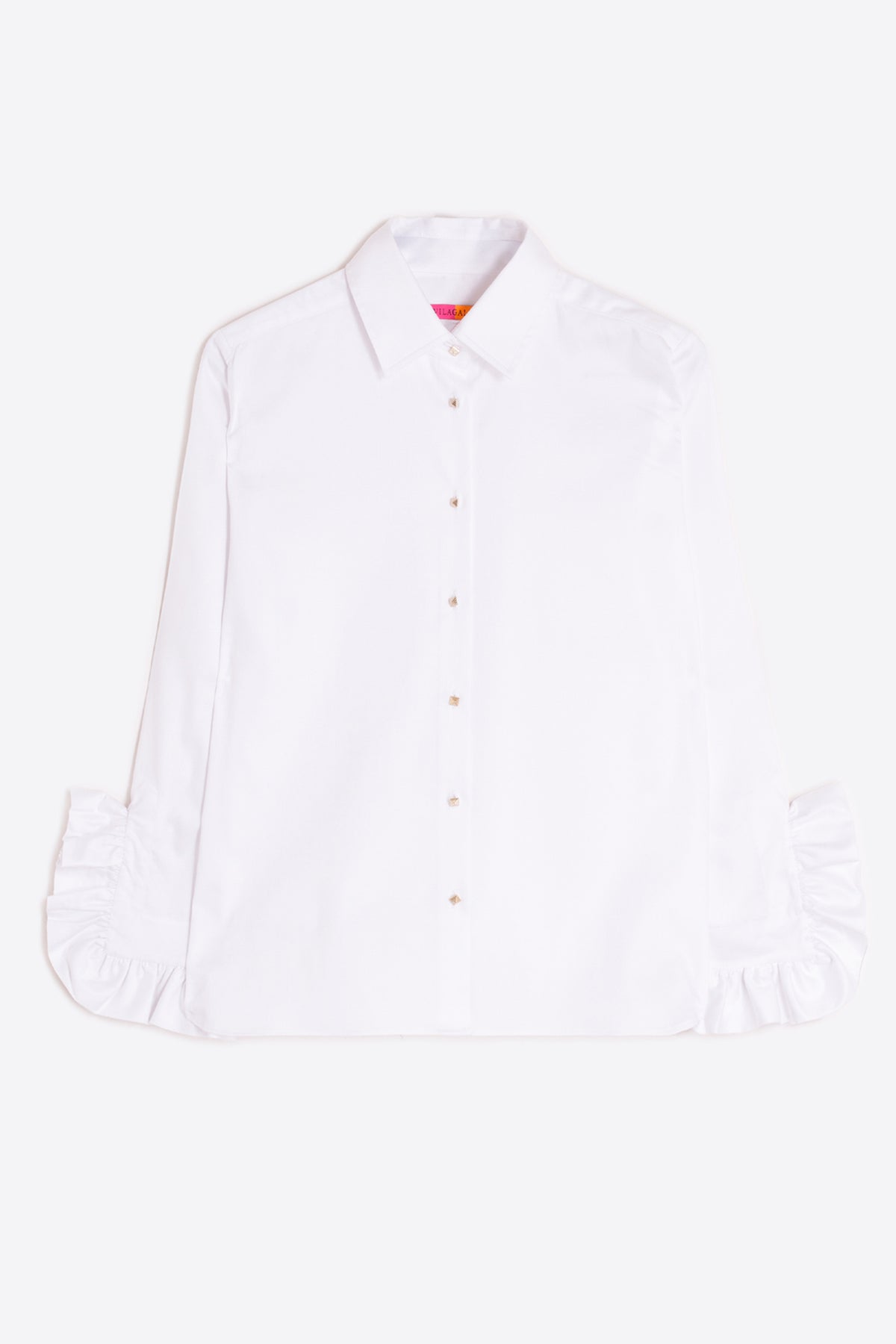 Crisp and feminine, the Vilagallo 32817 White Volantes Ruffle Sleeve Shirt elevates a wardrobe staple with statement-tier ruffle sleeves. Cut from fresh white cotton, it features a classic collared neckline, button-through front, and a relaxed yet refined silhouette that works across seasons.