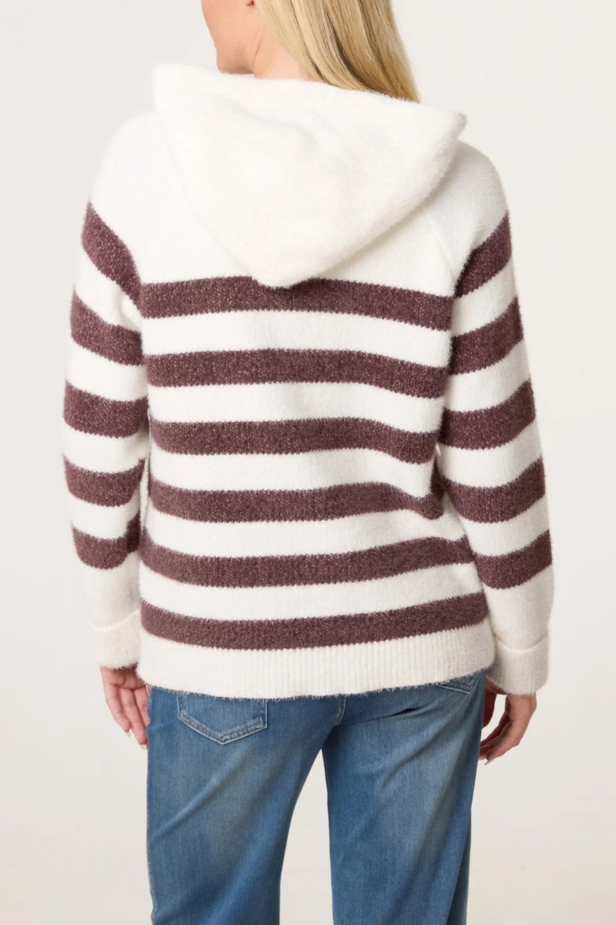 Chocolate Stripe Super Cosy Zip Cardi Hoodie
