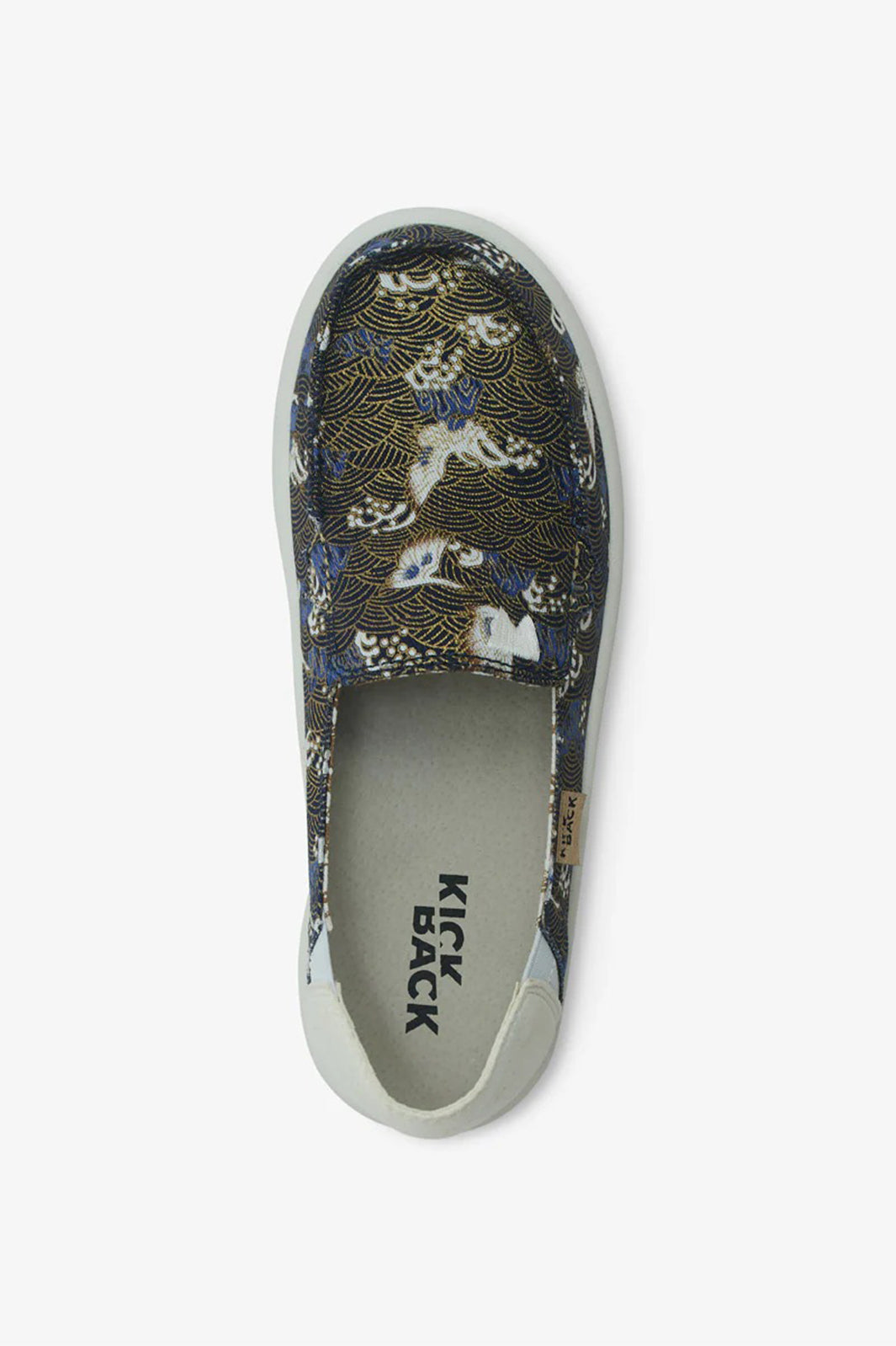 The Kickback Rizzo Black Oriental Lightweight Shoes are a fun, easy-to-wear style that brings comfort and personality to your everyday wardrobe. Designed with a lightweight slip-on shape, these shoes feature a striking black oriental-inspired print with blue, white, and gold-toned detailing for a standout finish. Set on a soft white sole, they offer a fresh contrast and an easy lightweight shoe for casual everyday comfort.