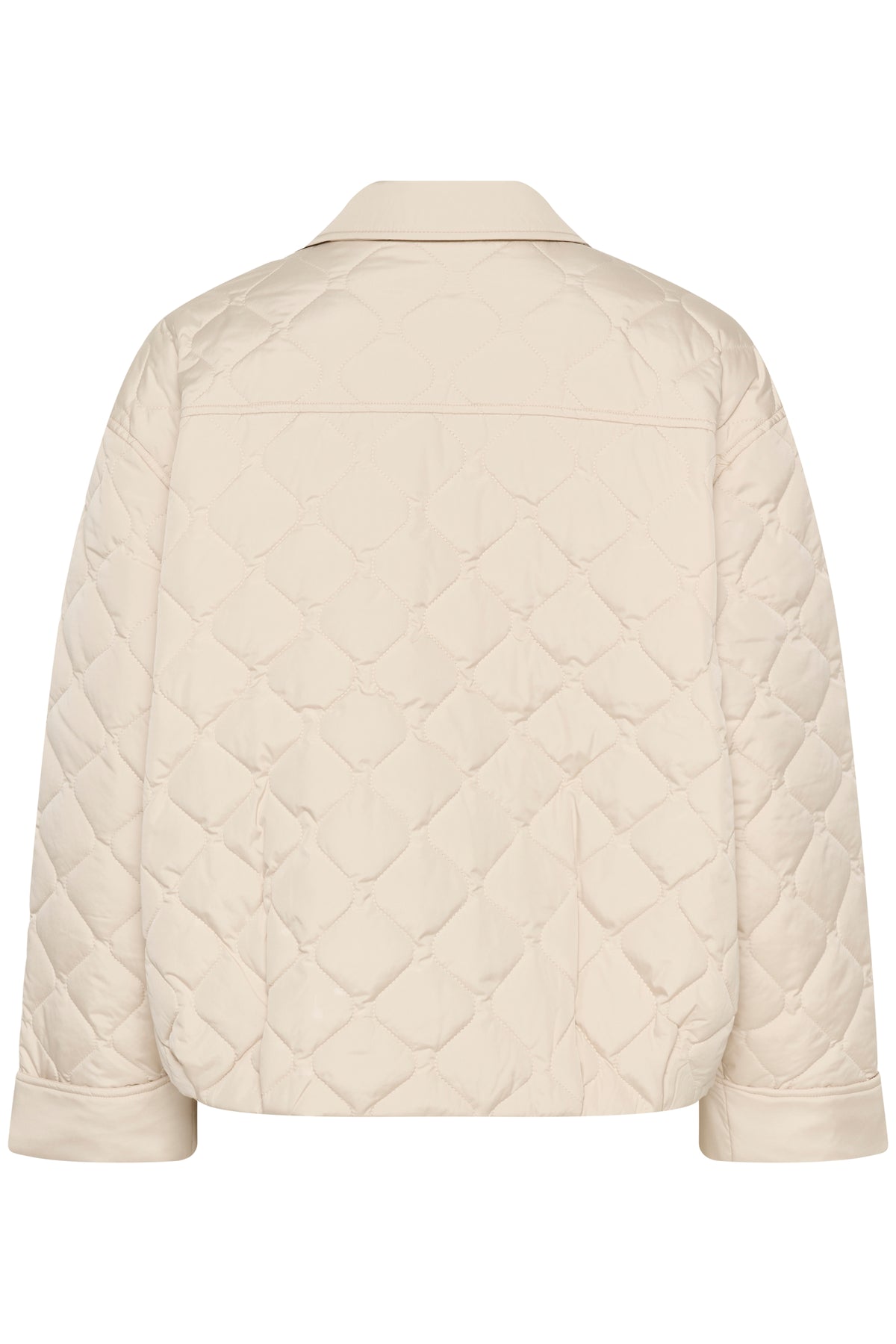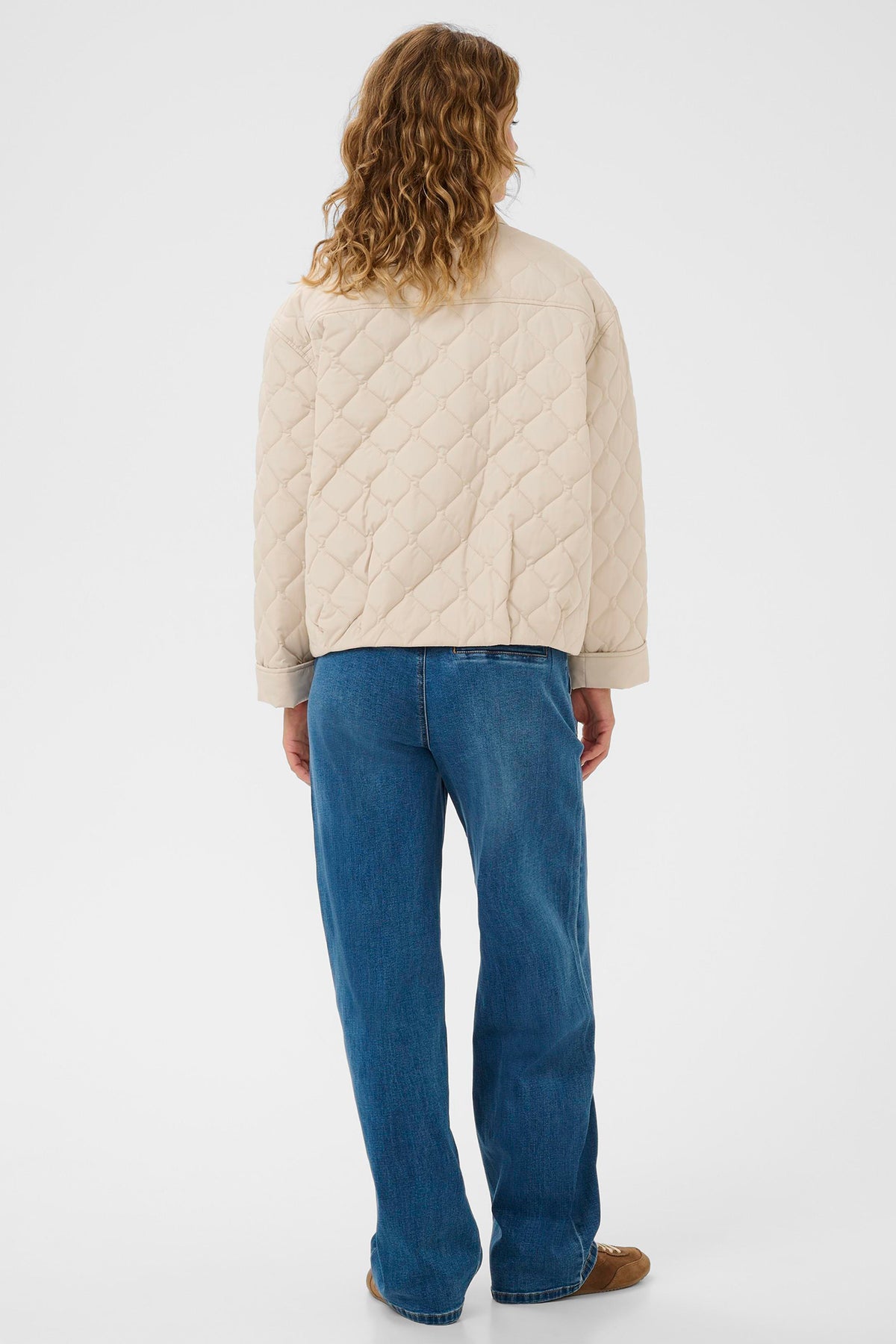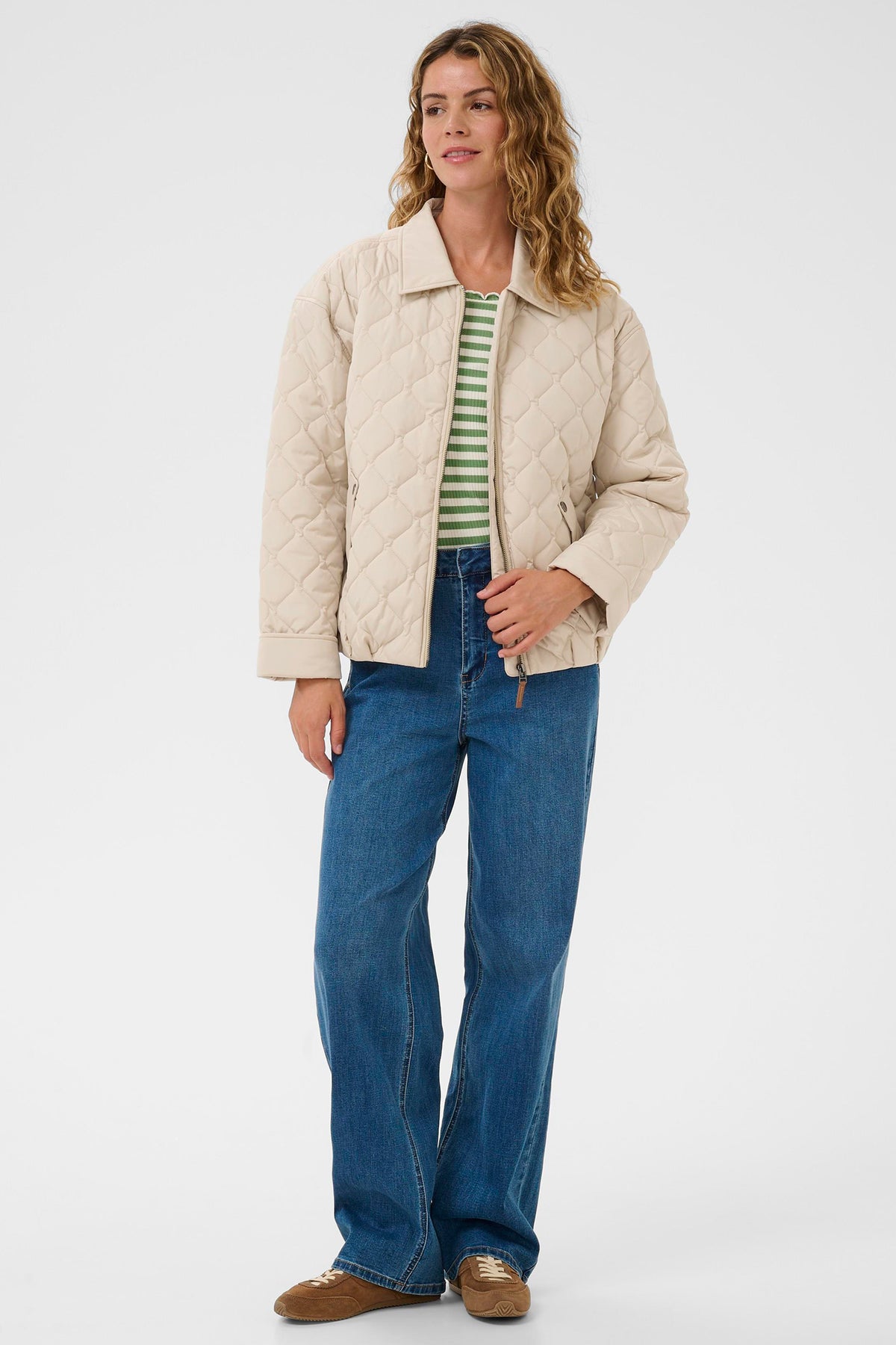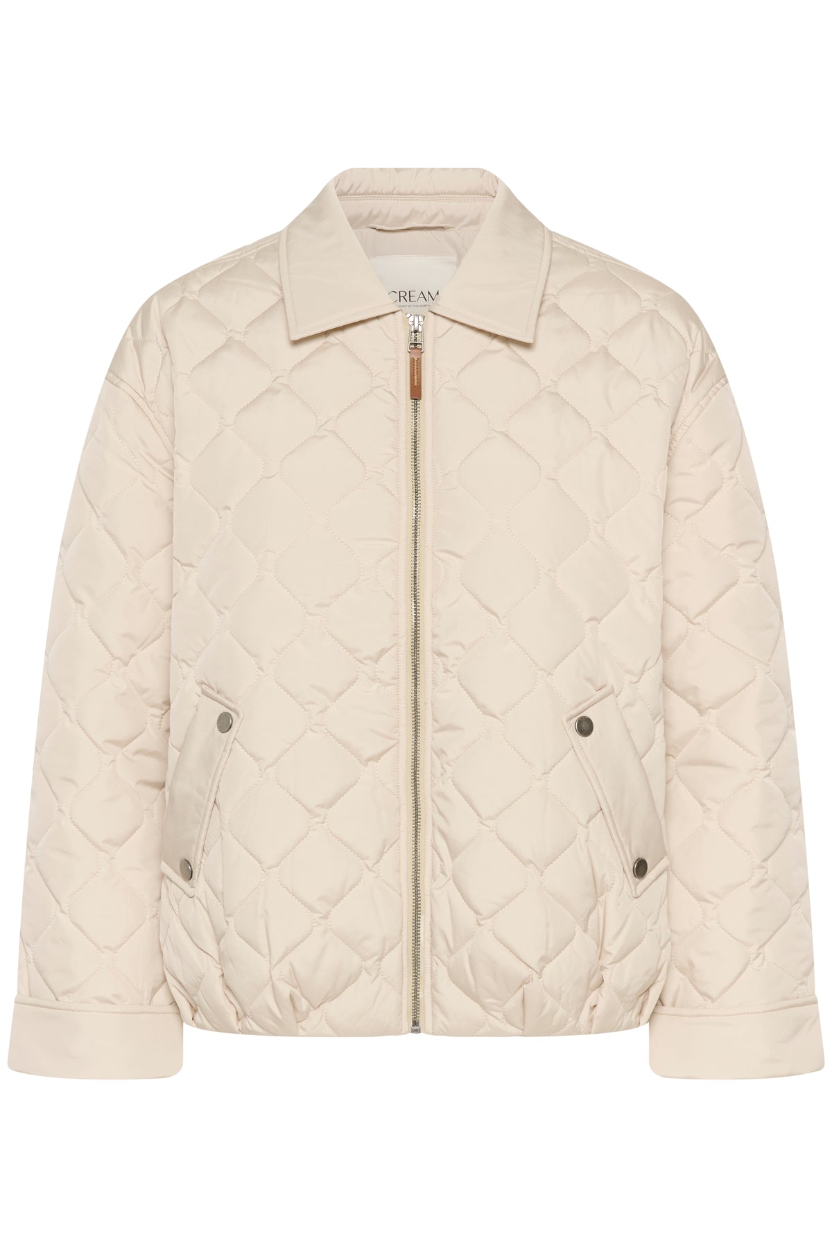 Cream Clothing CRArwen Oatmeal Beige Short Jacket 10614600 130401 is a cosy, quilted jacket in a soft oatmeal beige. Featuring a classic collar, zip front, and snap-button flap pockets, this short jacket offers warmth and style with a relaxed fit. Perfect for layering in cooler weather.