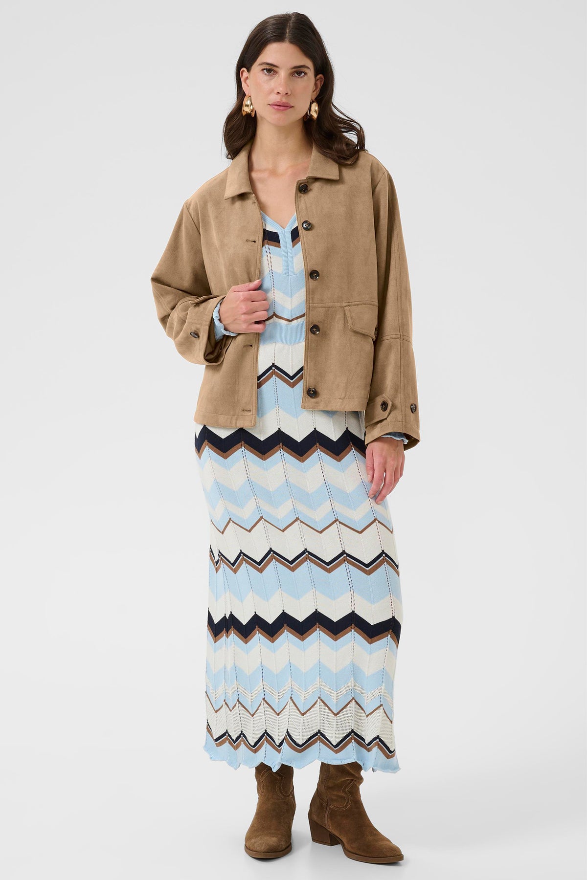 Cream Clothing CRCala Cocia Creme Jacket 10614560 181020 is a chic suede-look jacket in a warm creme shade. Featuring a classic collar, button-front closure, and flap pockets, this relaxed-fit jacket offers versatile style and comfort. Perfect for layering through the seasons.