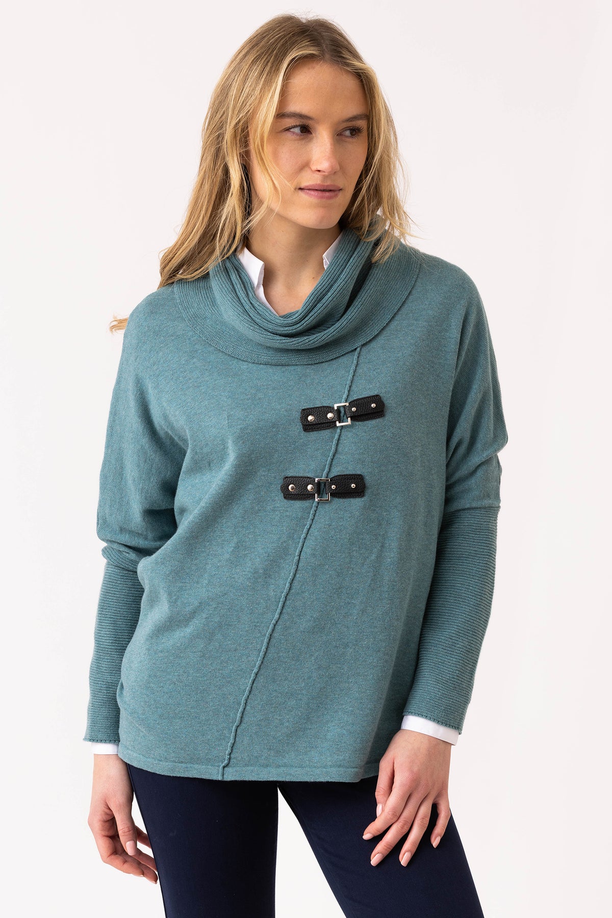 Marble Fashions 8093 Duck Egg Blue Cowl Neck Buckle Jumper 223