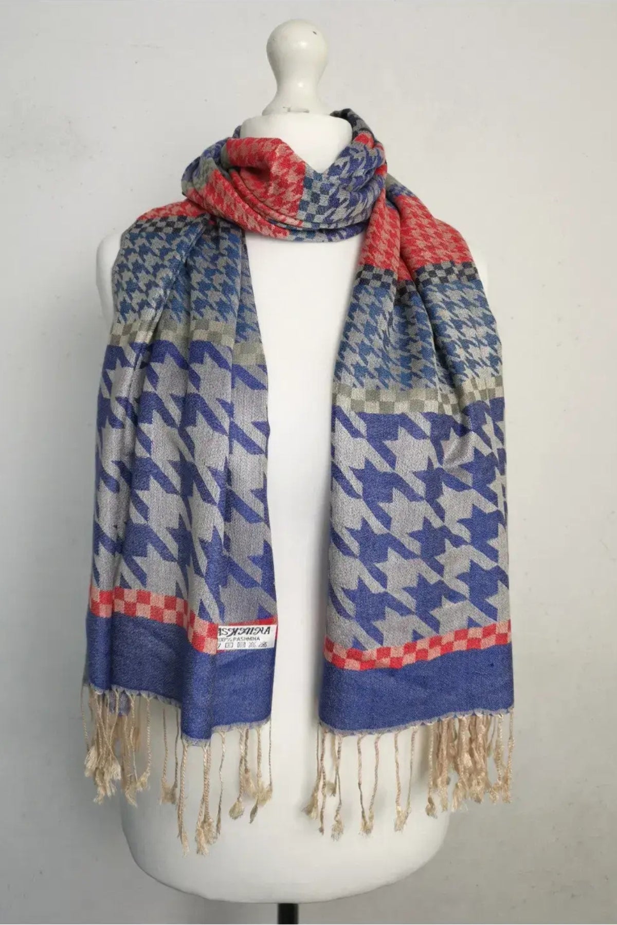 Blue Super Soft Dogtooth Print Pashmina Scarf Shawl Wrap
