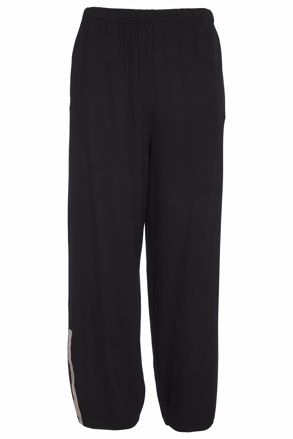 Ora ORW25134 977 Black Wide Leg Pull-On Metallic Trim Trousers