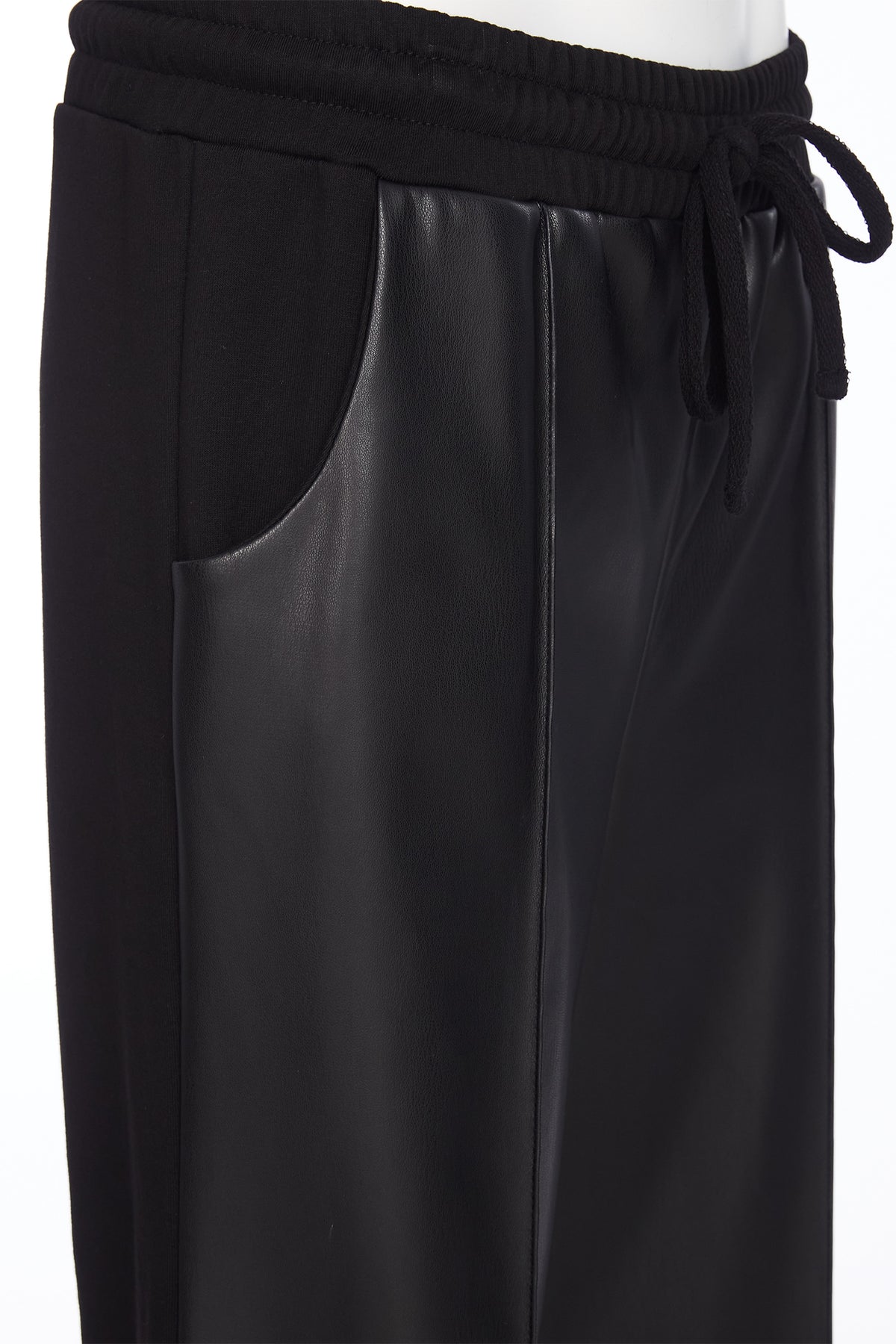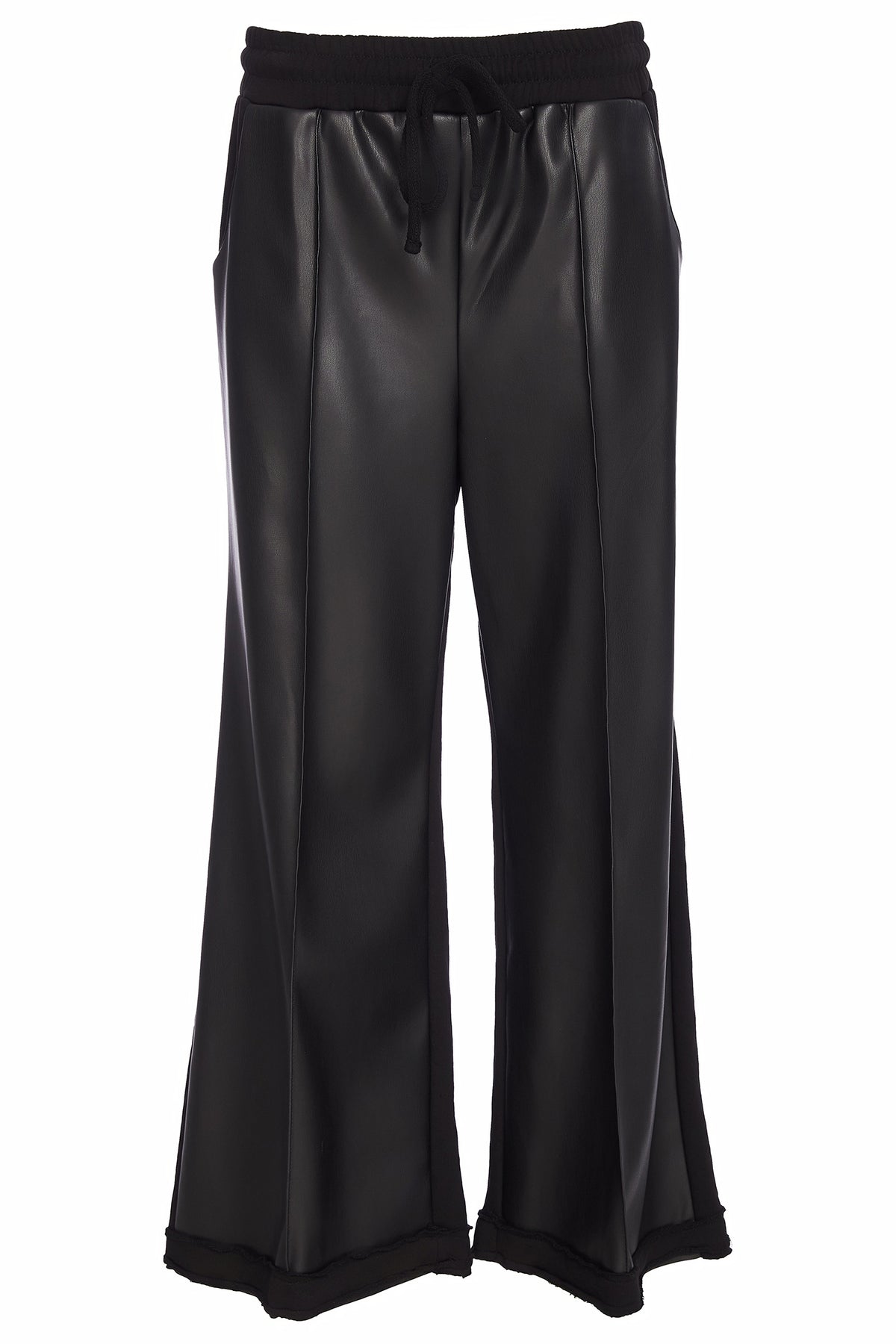 Ora ORW25144 09 Black Wide Leg Faux Leather Front Raw Edge Trousers