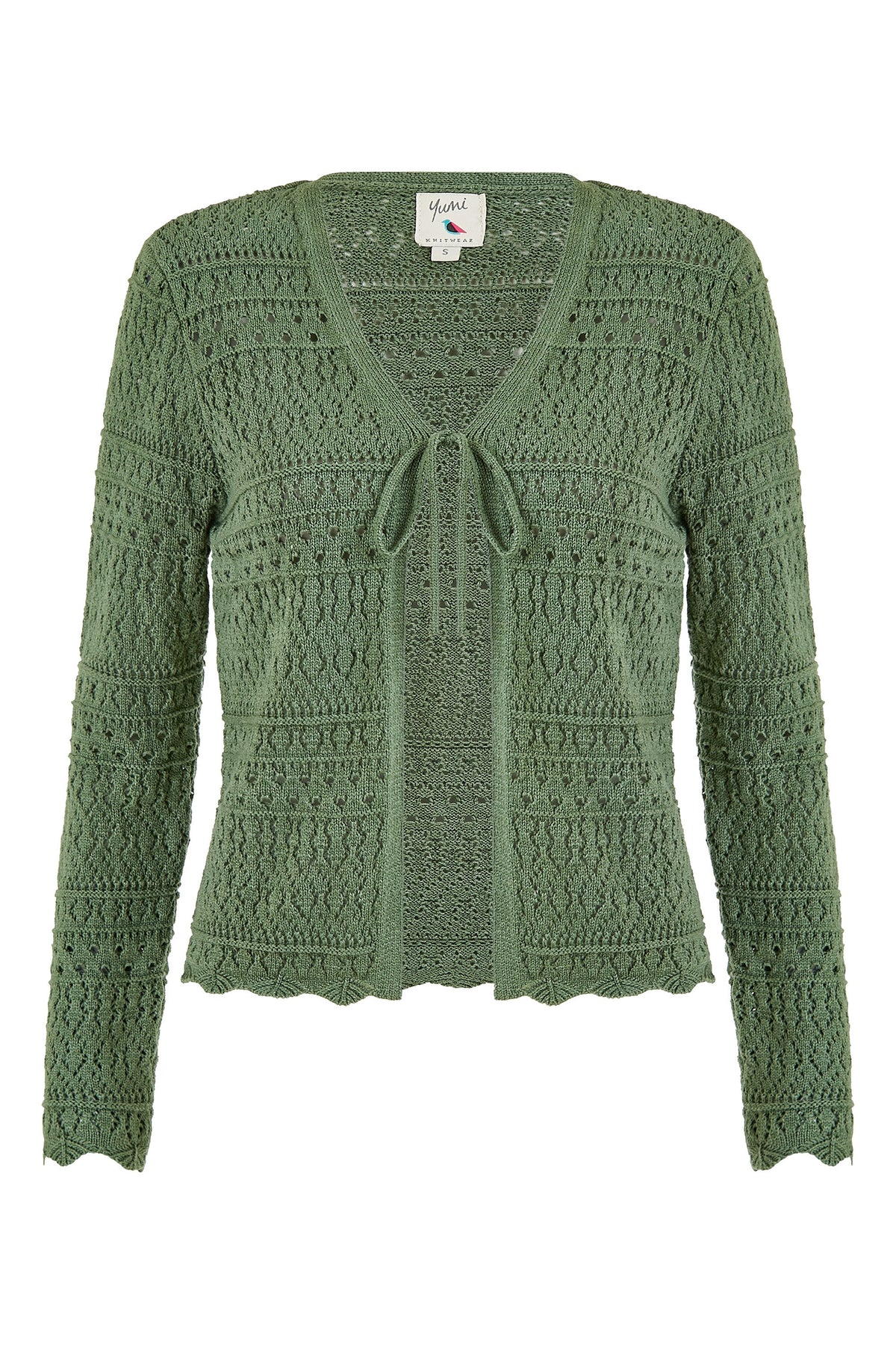 Yumi Green Crochet Tie Front Cardigan