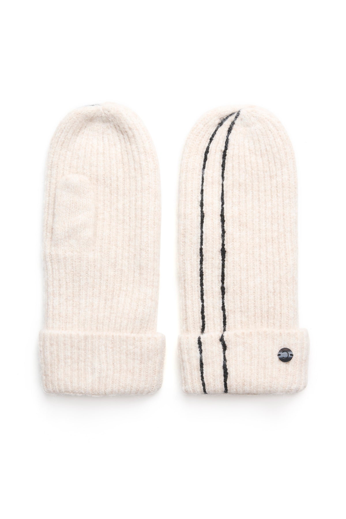 - Unique black scroll-inspired line detail on one mitten