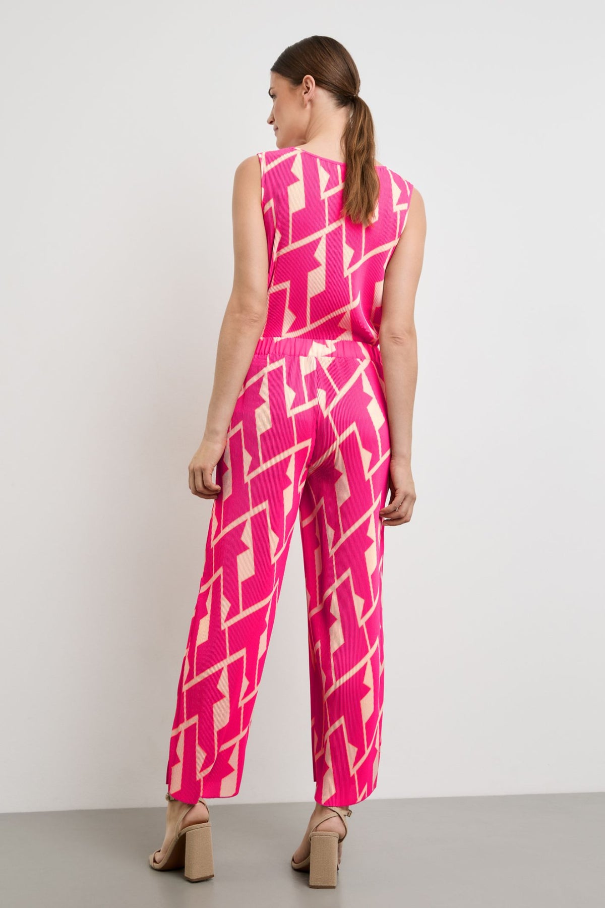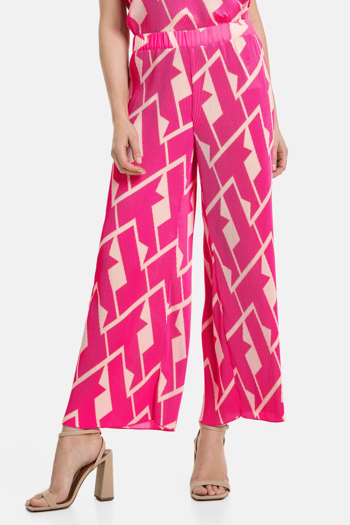 Gerry Weber 222116 Pink Geo Print Wide Leg Pleated Trousers