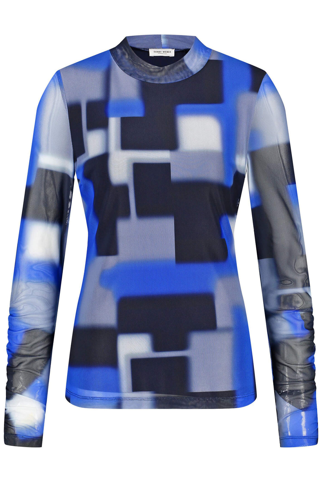 Gerry Weber 270232 Royal Blue Blocks Mesh Long Sleeve Top