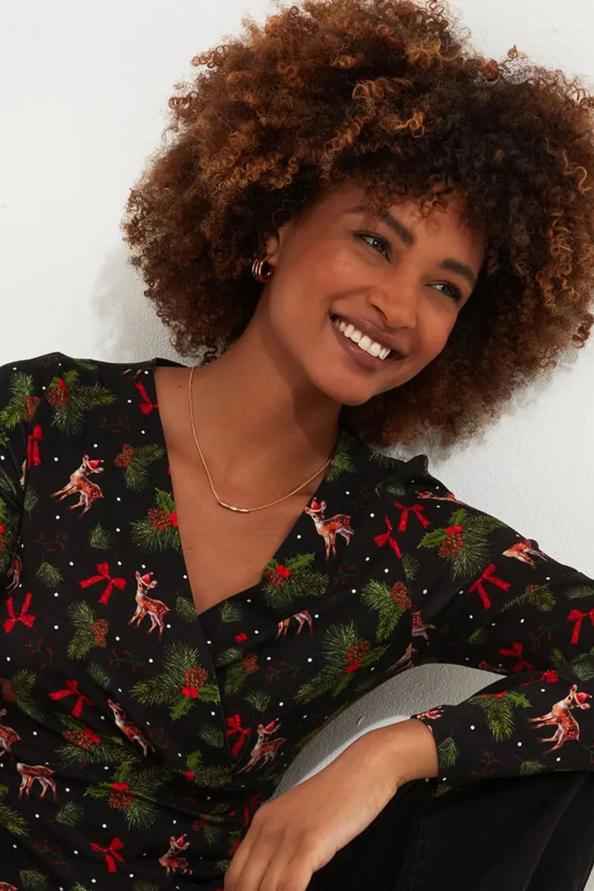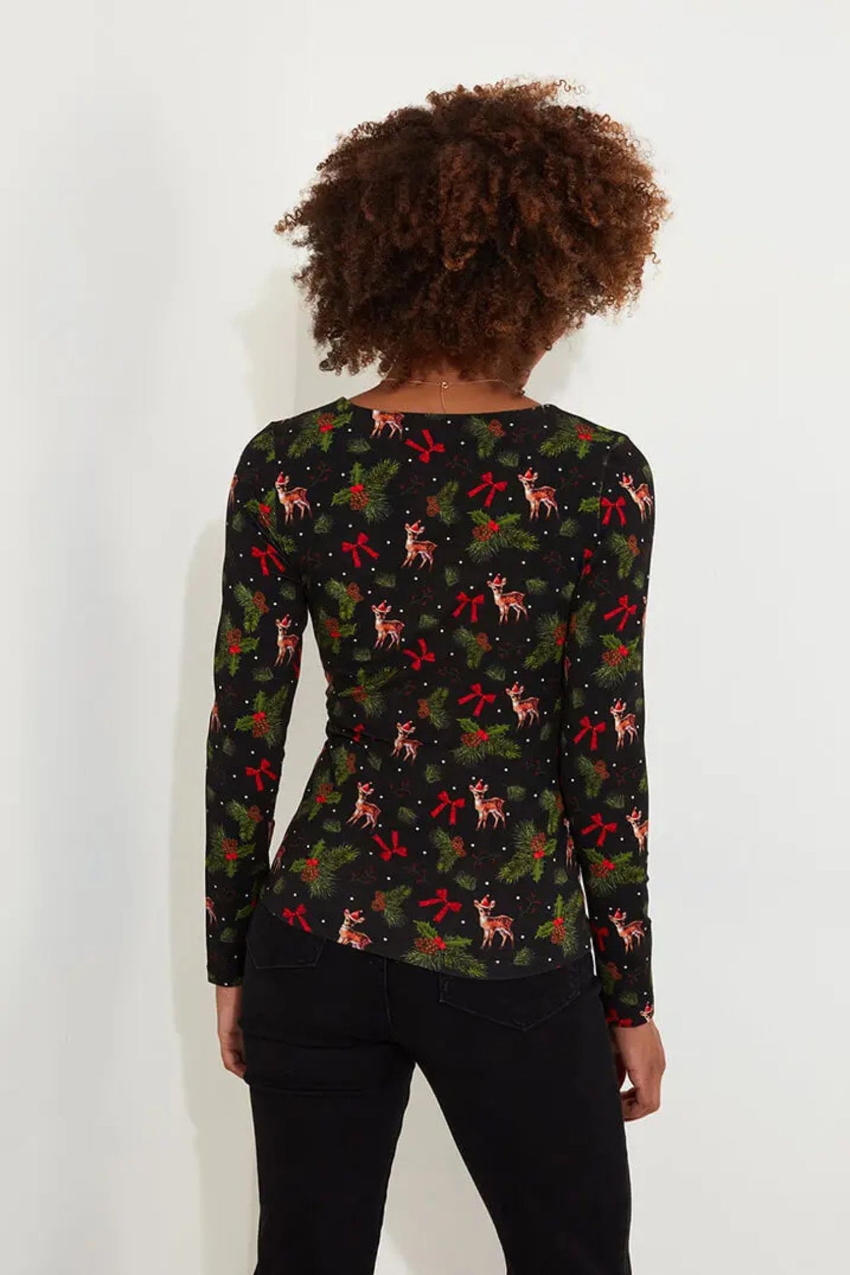 Let this Joe Browns Festive Jersey Faux Wrap Top WU141 add some holiday flair to your wardrobe! Featuring a playful holly jolly reindeer print, this top is perfect for both gift shopping and holiday parties. Style it with jeans or a skirt and feel fabulously festive all season.