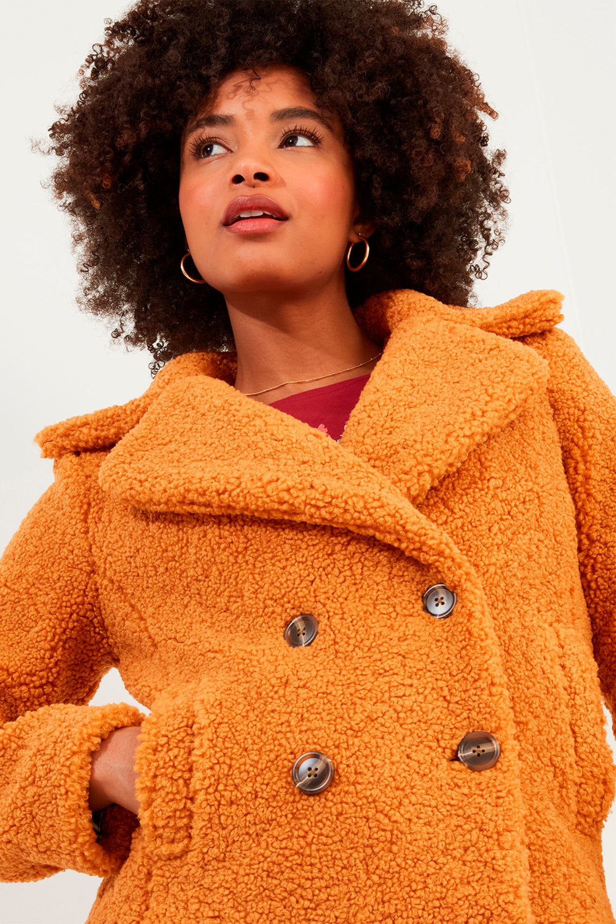 Update your winter wardrobe with our luxurious double-breasted teddy jacket! This seasonal staple will keep you warm and stylish, while the vibrant yellow ochre adds a unique touch. Whether paired with jeans and boots, a dress and tights, or your favourite pinafore, this jacket will effortlessly elevate any outfit. Brighten up those dull winter days with a pop of colour.