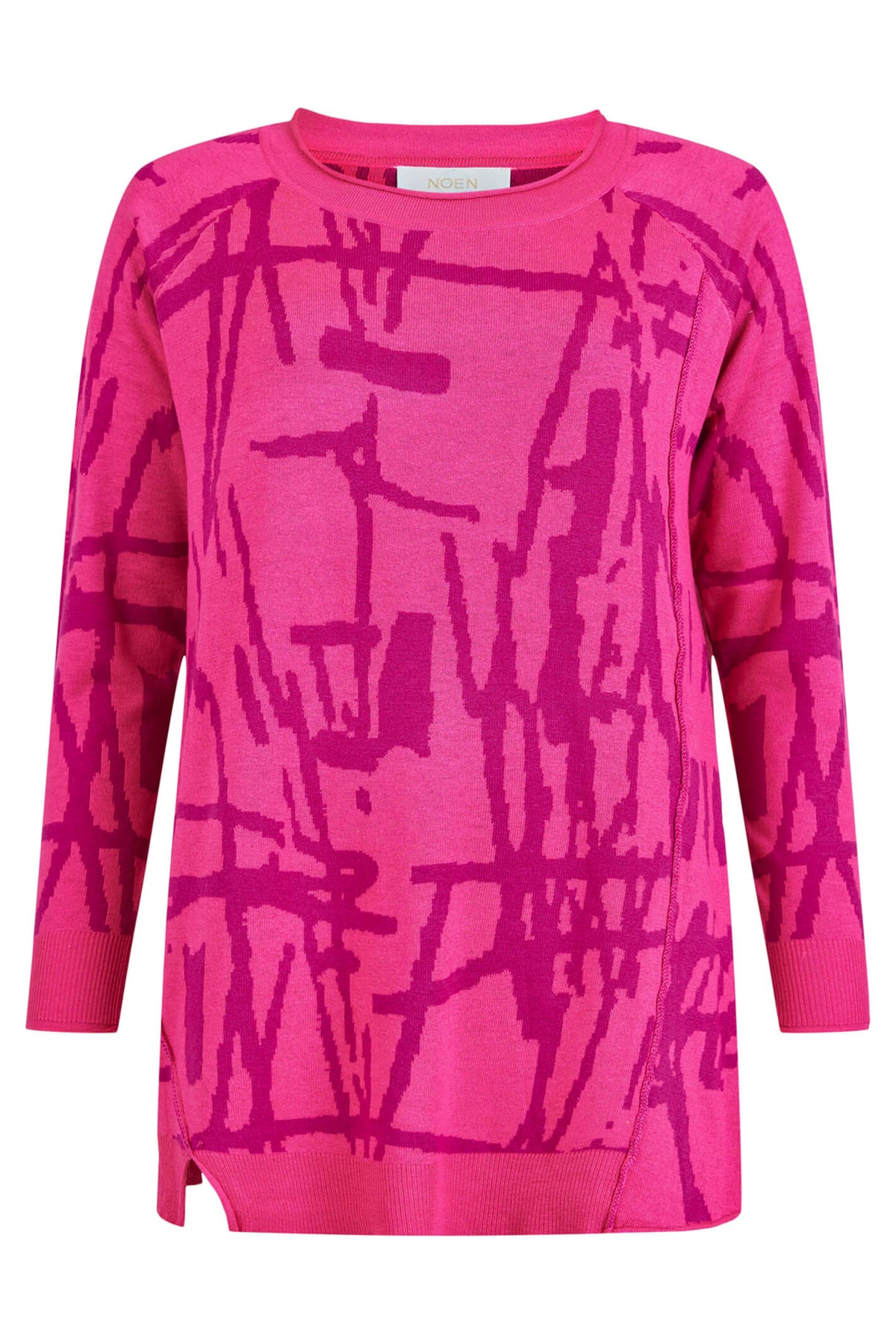 This stunning Noen 83389 Pink Patterned Curl Neck Loosefit Jumper is crafted from a soft fabric, adding a delightful pop of colour to any wardrobe. It features full length sleeves, a flattering rounded neckline, and ribbed detailing to the cuffs, neckline and hemline. With a small split detail to the front and back of the hemline, this jumper is an effortlessly chic choice that offers all day comfort.