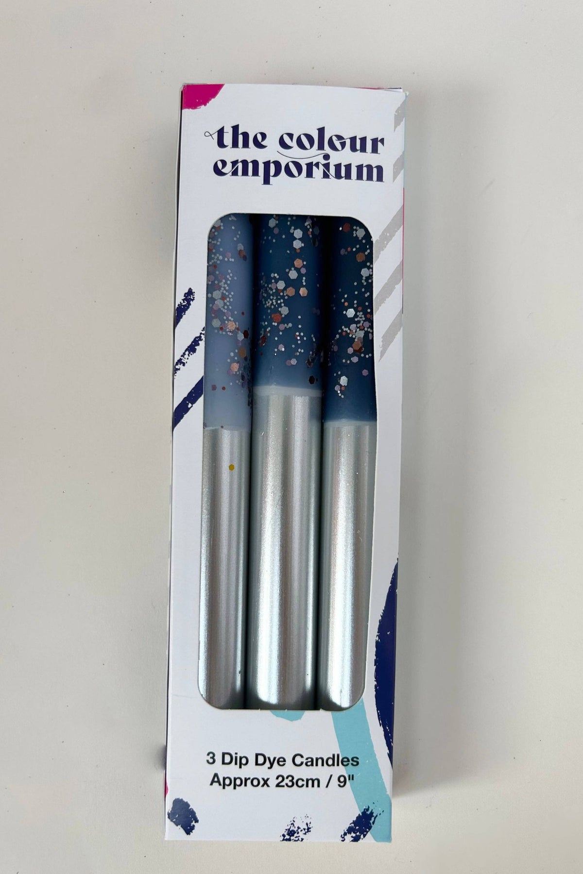 STARRY STARRY NIGHT Dip Dye Dinner Candle Trio UK Made, as featured in Country Living Magazine. Transform your dining table into a winter wonderland with our STARRY STARRY NIGHT Dip Dye Dinner Candle Trio. With a cool mix of slate grey and deepest navy blue, sprinkled with twinkling stars and dipped in silver metallic, these candles will add a touch of frosty elegance to your festive decor. And the best part?